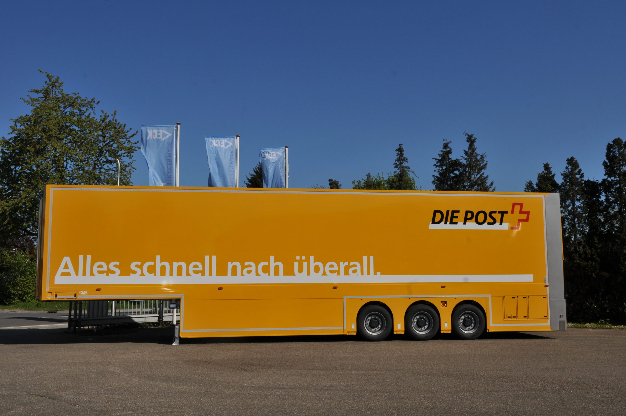 Trailerfabrikant Van Eck, een expert in specialistische trailerbouw, leverde onlangs een op maat gemaakte dubbeldeks trailer aan de Zwitserse Post. De Zwitserse Post werkt voor het vervoer samen met enkele logistieke dienstverleners. Zij hebben speciale trailers in de opvallend gele Post-kleuren rijden.