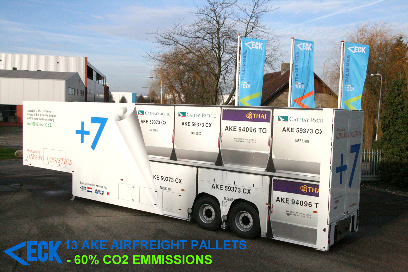 Die klant is Trans Web Co. Ltd. waar van Eck zes jaar geleden mee in contact kwam. Dat leidde twee jaar geleden tot de vraag aan Van Eck om een trailer te ontwikkelen waarmee zoveel mogelijk luchtvrachtpallets vervoerd konden worden. Van belang was namelijk de CO2-uitstoot van deze transporten met zestig procent terug te dringen. Daarnaast moesten de pallets snel gelost en geladen kunnen worden. In maart gaan nog eens twee van deze opleggers op de boot naar Japan.