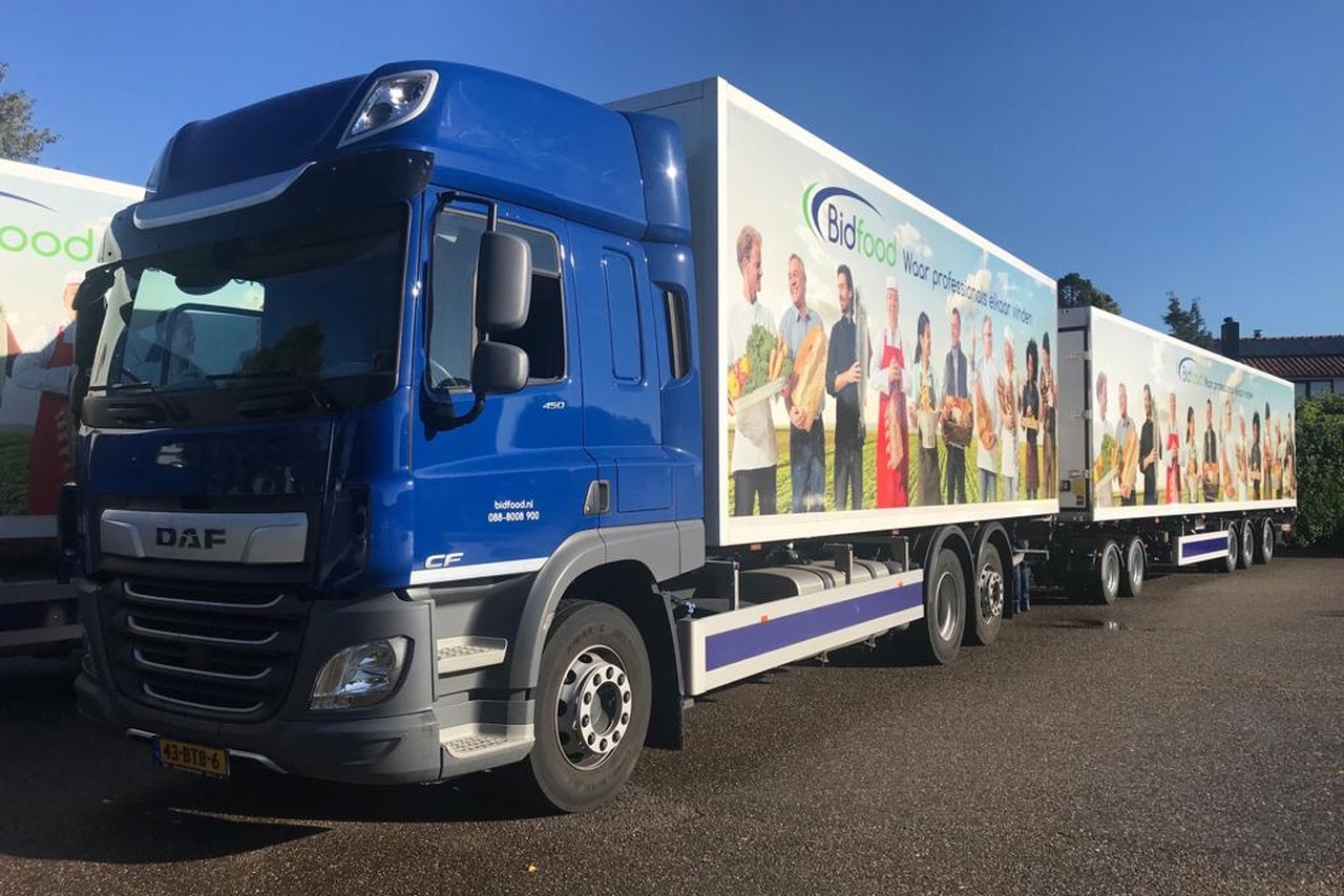“We koppelen de dolly aan een bakwagen en koppelen daar weer een oplegger achter,” vertelt Cor de Rooij, hoofd wagenparkbeheer bij Bidfood. De logistieke operatie van Bidfood is omvangrijk en tweeledig. Met een wagenpark van 450 eenheden worden de voorraden van achttien filialen dagelijks op peil gehouden. Van daar uit worden duizenden klanten bediend die keuze hebben uit een assortiment van meer dan 50.000 producten die vanzelfsprekend dagelijks en vers op de gewenste tijd aangeleverd moeten worden.  “Hierbij is het van het grootste belang dat we dit doen met een zo efficiënt mogelijke operatie”, aldus De Rooij.