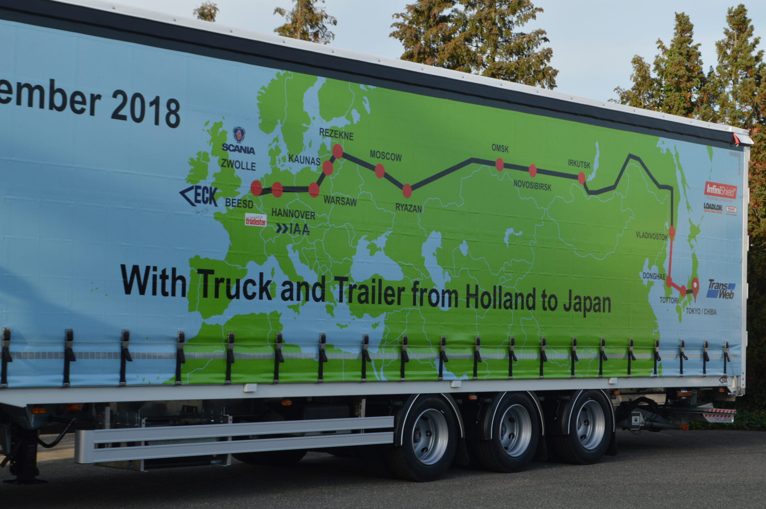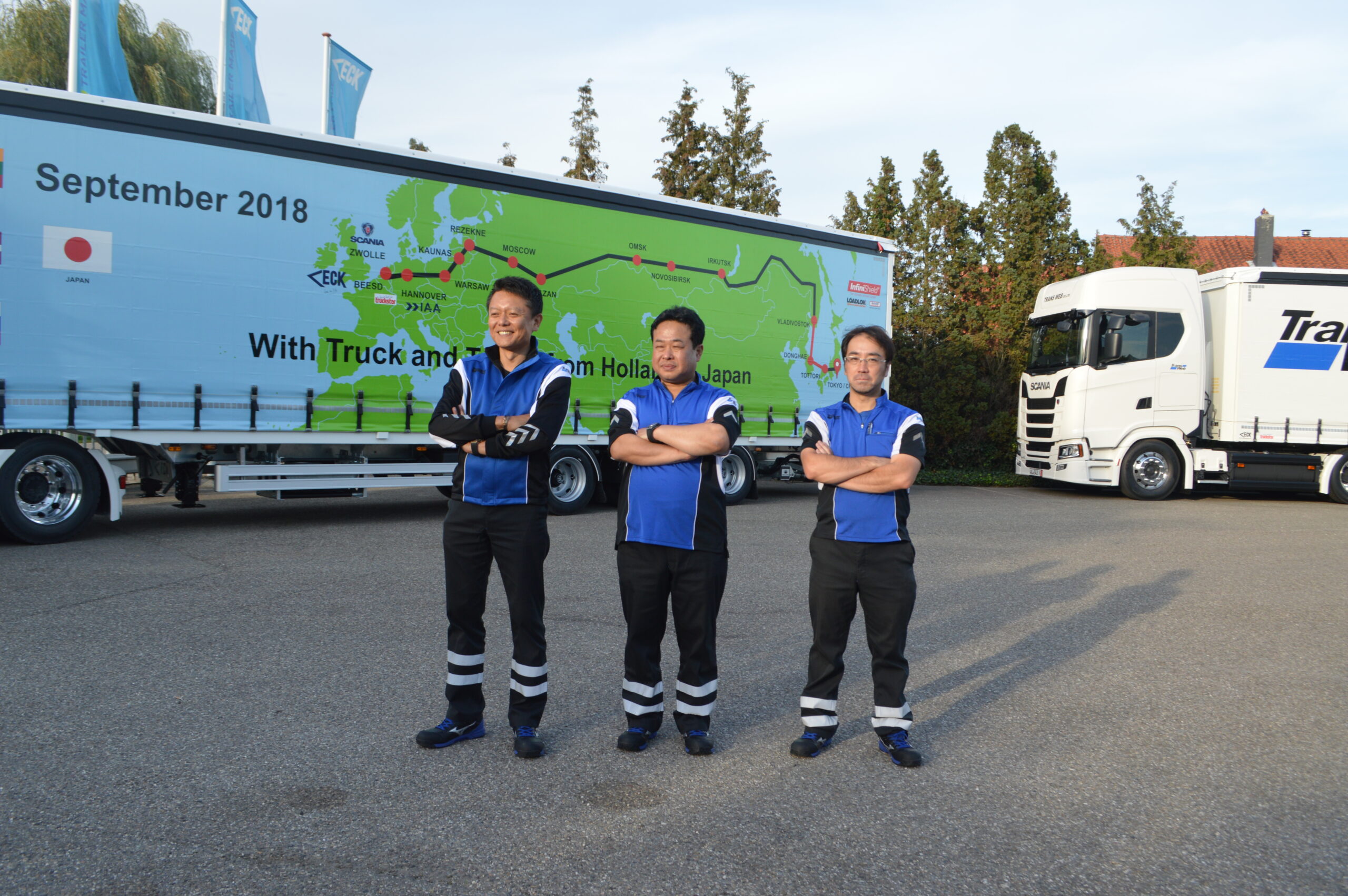 Gisteravond zijn ze uit Beesd vertrokken: transportondernemer Takeshi Maesawa en twee van zijn chauffeurs, Shinya Sasaki en Junji Tobita. Met twee combinaties rijden ze van Beesd naar Tokyo via onder meer Moskou en Novosibirsk. De reis beslaat 13.000 kilometer en zal ongeveer drie weken in beslag nemen.