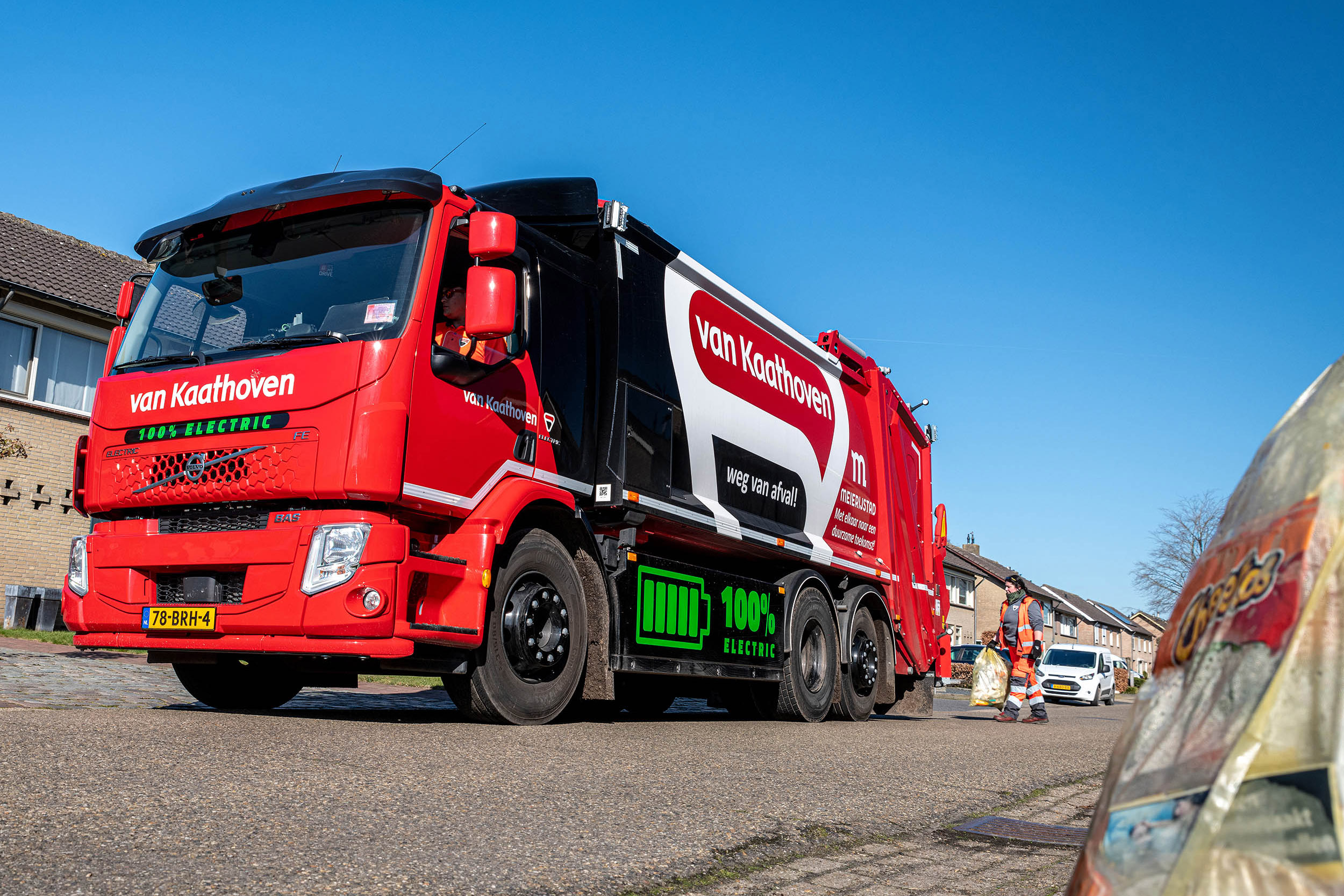 Recentelijk nam Van Kaathoven een Volvo FE Electric in gebruik voor de inzameling van PMD-afval binnen de gemeente Meierijstad. Een 100% elektrisch aangedreven truck zorgt voor minder fijnstof, minder CO2-uitstoot en minder geluid. Dat waren voor Van Kaathoven en de gemeente Meierijstad redenen om een zware elektrische truck aan te schaffen.