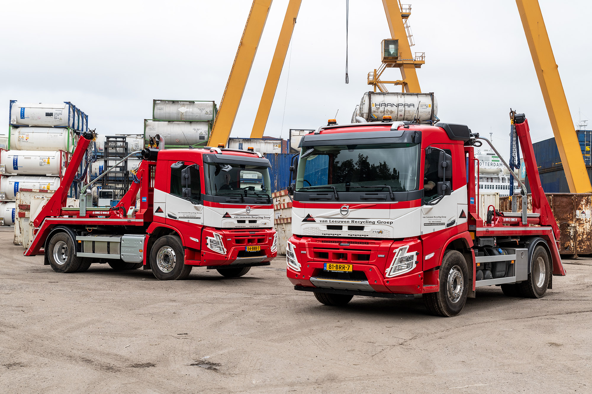 De nieuwe trucks worden ingezet voor Van Leeuwen Recycling Groep en Afvalcontainers Rijnmond, dat afvalcontainers verhuurt aan particulieren en bedrijven. Vanwege groei in werkzaamheden breidt Leo van Leeuwen, directeur-eigenaar van beide bedrijven, het wagenpark uit. Hij neemt dit jaar gefaseerd vijf Volvo FMX-trucks met 14-tons VDL-portaalarmsysteem in gebruik.