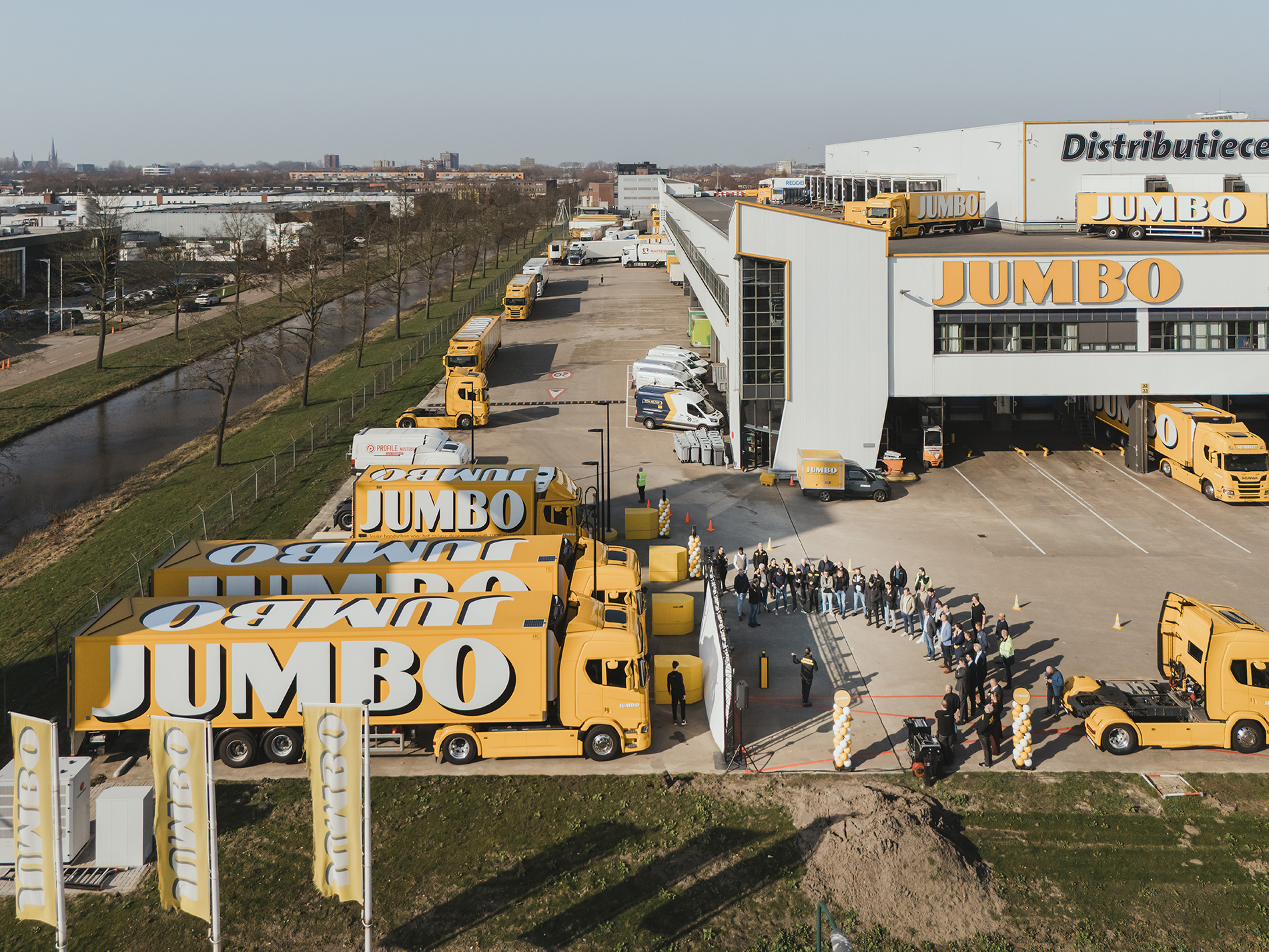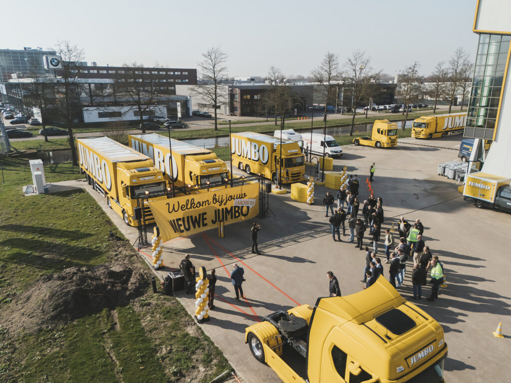 Jumbo is met ruim 700 winkels in Nederland en België de tweede supermarktketen van Nederland. Jumbo werkt actief aan het verminderen van haar negatieve impact op het klimaat en maakt ook haar transport steeds duurzamer. Dat doet het bedrijf met elektrische voertuigen, slimme logistiek en circulaire oplossingen. Het doel is dat in 2030 80% van de thuisbezorgbussen en 40% van de grote vrachtwagens niet meer op fossiele brandstof rijdt. De uitbreiding van de elektrische vloot en het nieuwe laadplein dragen hieraan bij.