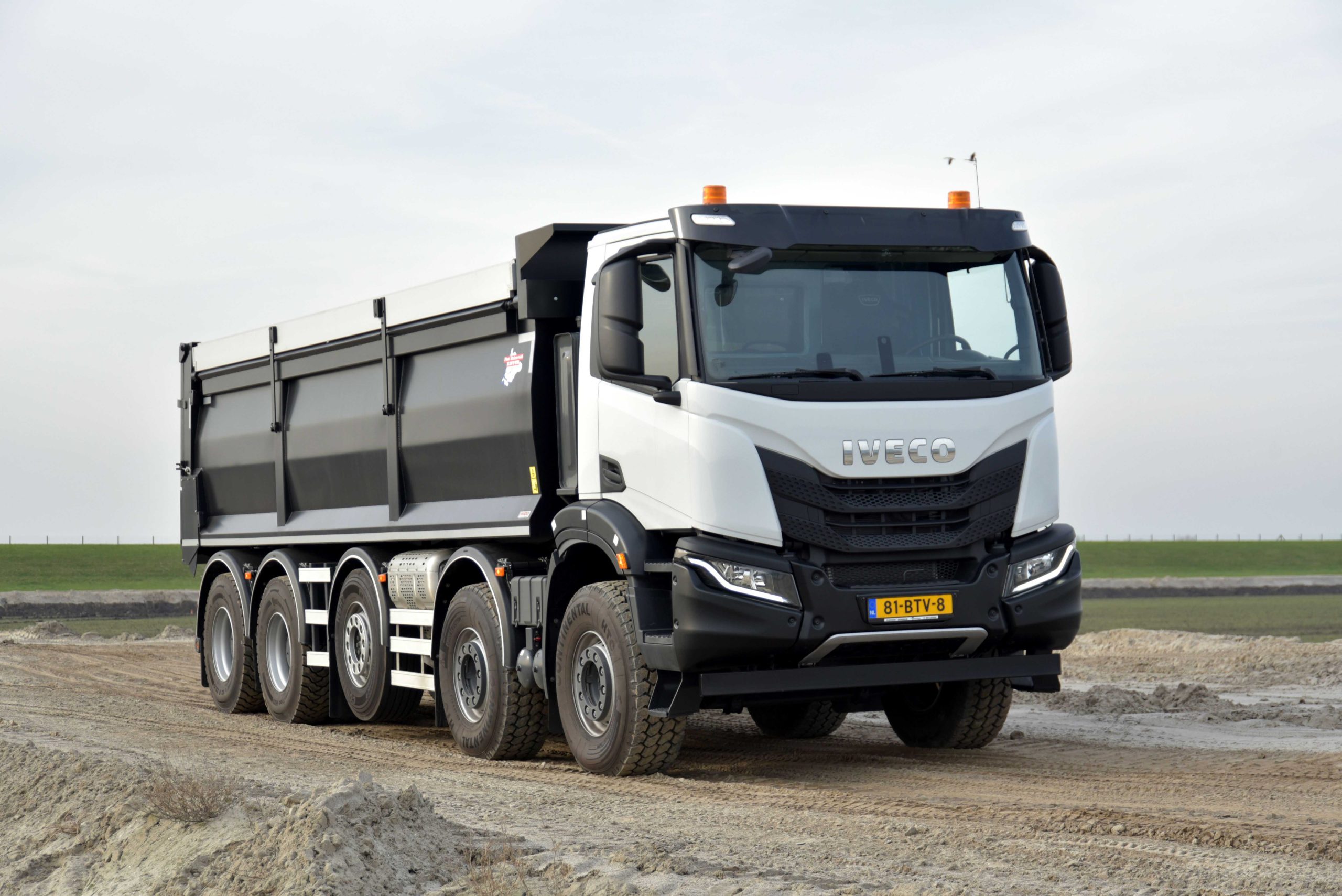 De Iveco T-Way 10×4 kwam als 8×4 uit de fabriek, waarna Veldhuizen Trucks er een luchtgeveerde, liftbare en sturende middelste as onder bouwde. Het resultaat is een 10×4 met een laag eigen gewicht, een robuuste bouw en een hoog netto laadvermogen. Door de extra as ontstond er een kipper met een totaal terreingewicht van 49 ton op kenteken. Het eigen gewicht van de opgebouwde kipper, compleet met een geïsoleerde Ruizeveld kipperopbouw mét asfaltsnip en milieukleppen bedraagt slechts 18.650 kilo. Dat betekent dus een netto laadvermogen van 30,35 ton.