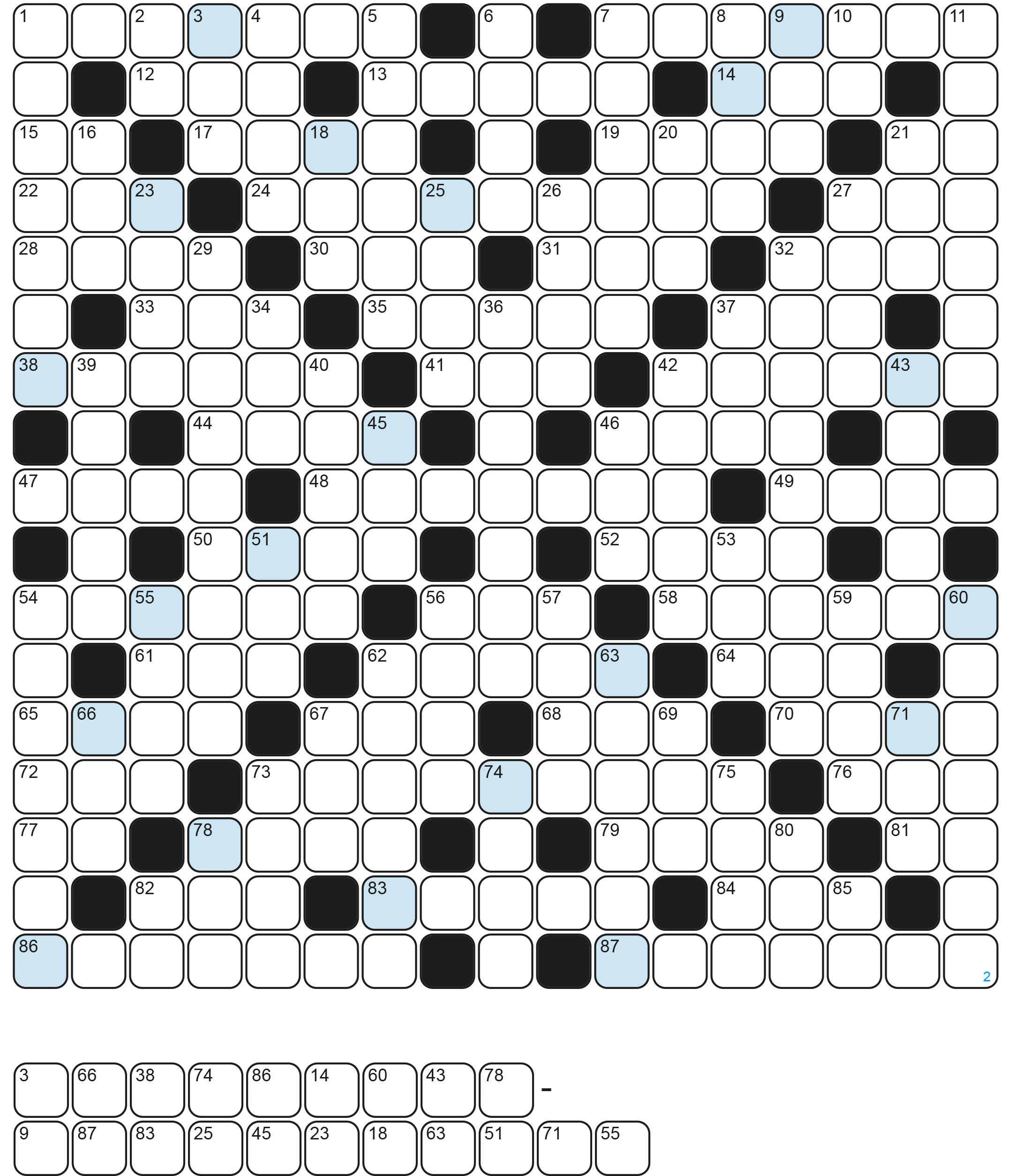 1. attribuut in een ijssalon; 7. middelpunt van een stad; 12. paleis bij Apeldoorn; 13. Antilliaans eiland; 14. Europeaan; 15. bedrijfseconoom (afk.); 17. verdriet of pijn; 19. gemalen graan; 21. met name (afk.); 22. grond om boerderij; 24. ontvoerder van kinderen; 27. woud; 28. spoorstaaf; 30. steen; 31. sullig persoon; 32. eenheid van elektrische spanning; 33. plezier; 35. inwendig orgaan; 37. plaaggeest; 38. handwerktechniek; 41. duivenhok; 42. bovenste verdieping van een huis; 44. ouderloos kind; 46. zuivelproduct; 47. dameslingerie; 48. voortdurend en gelijkmatig; 49. echtgenoot; 50. insect; 52. binnenste deel; 54. denksport; 56. sportattribuut; 58. plaats in Zuid-Holland; 61. Engels bier; 62. jaargetijde; 64. schrijfplankje; 65. huisdier; 67. naaldboom; 68. houten drinkbakje; 70. sprookjesfiguur; 72. niet gebonden; 73. bezit van een boer; 76. in prima conditie; 77. openbaar ministerie (afk.); 78. ceintuur; 79. kuil met regenwater; 81. lager onderwijs (afk.); 82. afgemat; 83. onze planeet; 84. op de manier van; 86. met streepjes opvullen; 87. Frans automerk.