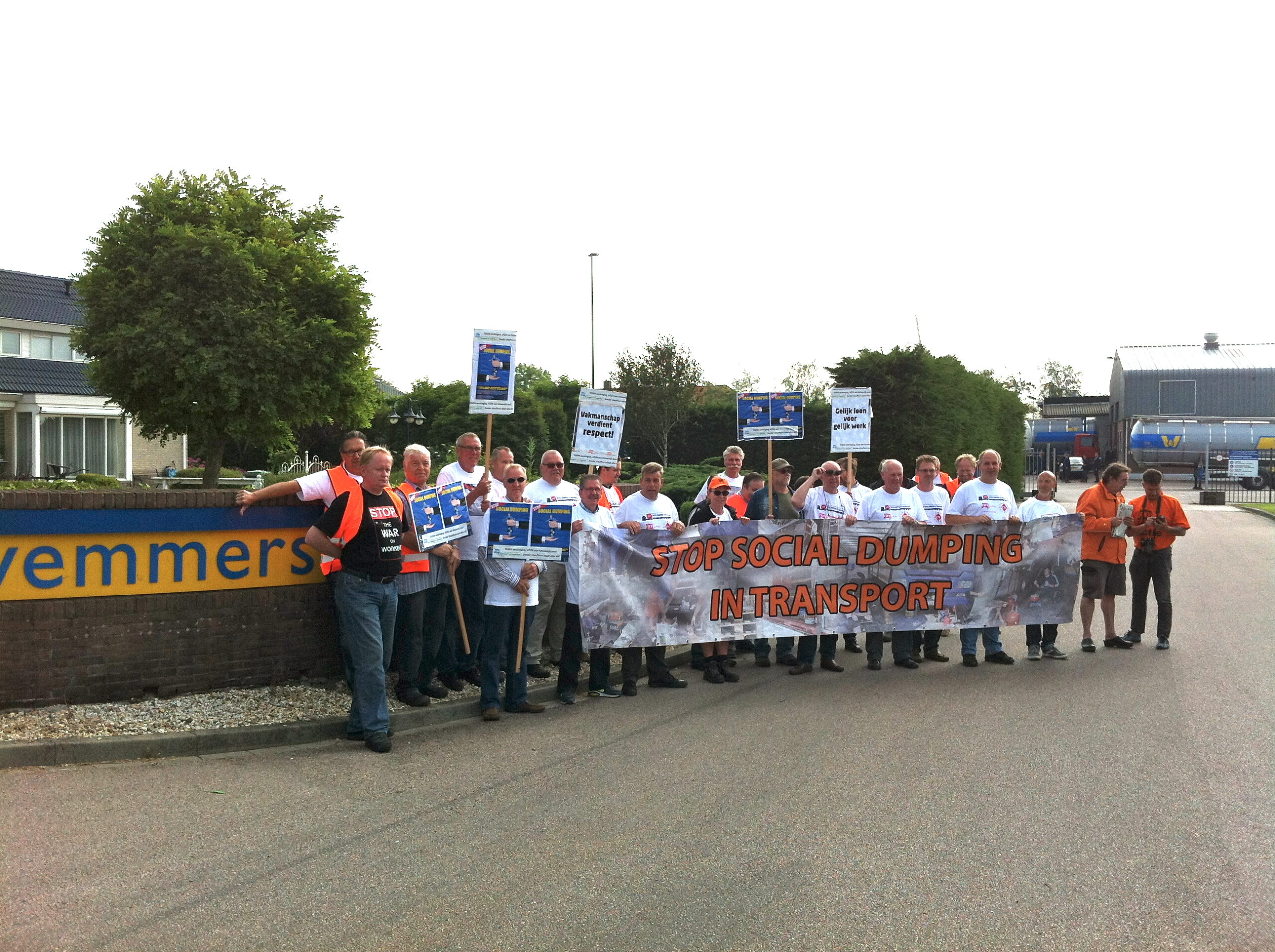 FNV Bondgenoten heeft vanochtend een verrassingsactie gevoerd bij Wemmers Tanktranport. Het bedrijf zou zich schuldig maken aan ‘schijnconstructies’.