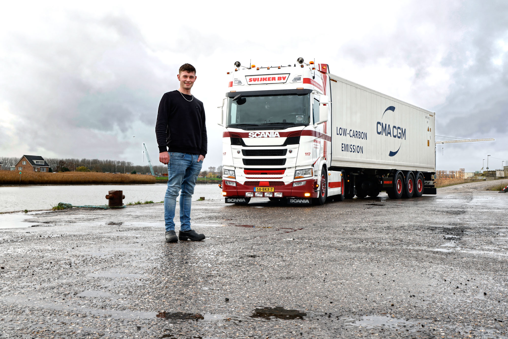 Gijs Roggeveen uit Gouda zou timmerman worden, maar toch zit de achtienjarige nu met veel plezier op een Scania. Hij rijdt voor Suijker uit Moordrecht.