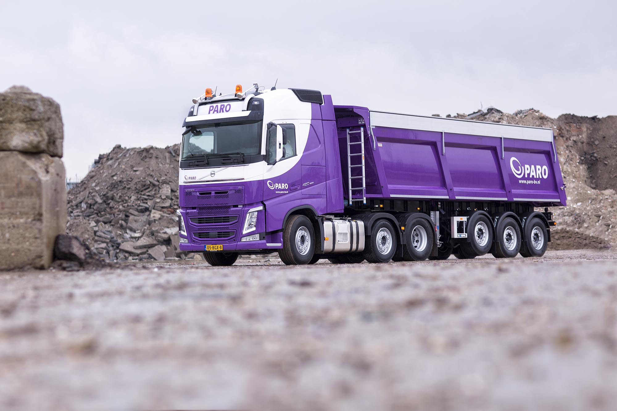 PARO klopte met een duidelijk wensenpakket aan bij Volvo Group Truck Center Amsterdam. Een laag eigen voertuiggewicht was een belangrijke eis. “We rijden veel zwaar puin en dan zijn stalen kieptrailers duurzamer dan aluminium of kunststof trailers”, vertelt bedrijfsleider Jan Koetsier.