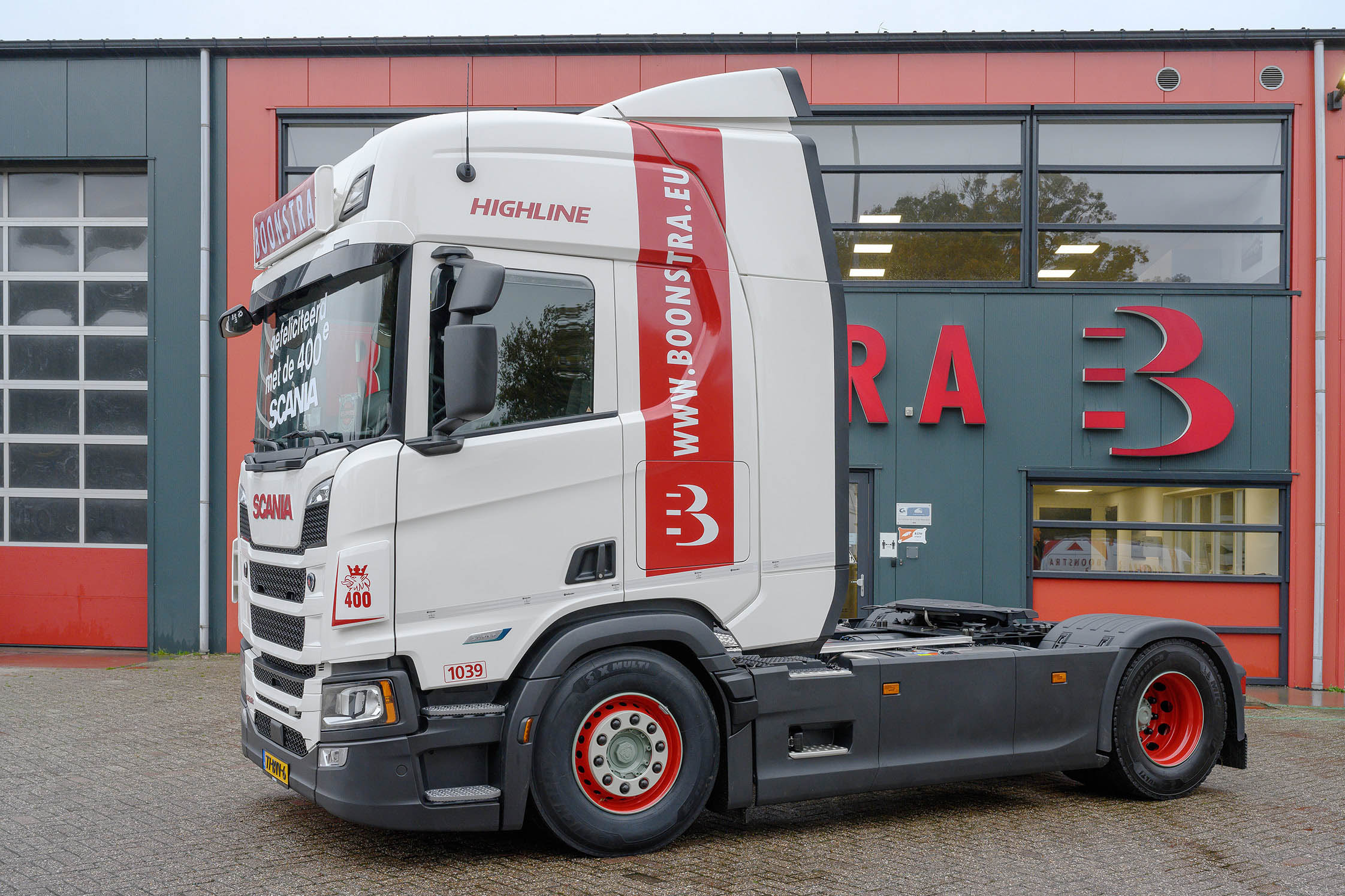 De basis van Boonstra Transport, gevestigd in Haulerwijk, werd in 1928 gelegd door Feike Boonstra. Inmiddels is het no-nonsense familiebedrijf in handen van de derde generatie. De volgende staat al te popelen om het over te nemen. Begin jaren vijftig werden de eerste Scania vrachtwagens in gebruik genomen en dat nu de vierhonderdste verwelkomd wordt, is volgens Boonstra niet toevallig. “In aanschaf is het niet het goedkoopste merk. Echter is dankzij het brandstofverbruik de TCO onderaan de streep beter dan andere merken in onze vloot.”