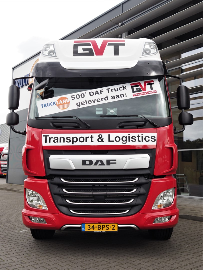 Met de levering van negentien DAF CF 410 FT Space Cab trekkers aan de GVT Group of Logistics in Tilburg, completeerde Truckland een order van in totaal 27 trucks. Het gaat om 24 identieke DAF CF trekkers en een drietal CF 410 FA Space Cab bakwagens. In het hart van deze levering bevond zich de vijfhonderdste aan deze Brabantse logistiek dienstverlener geleverde DAF.