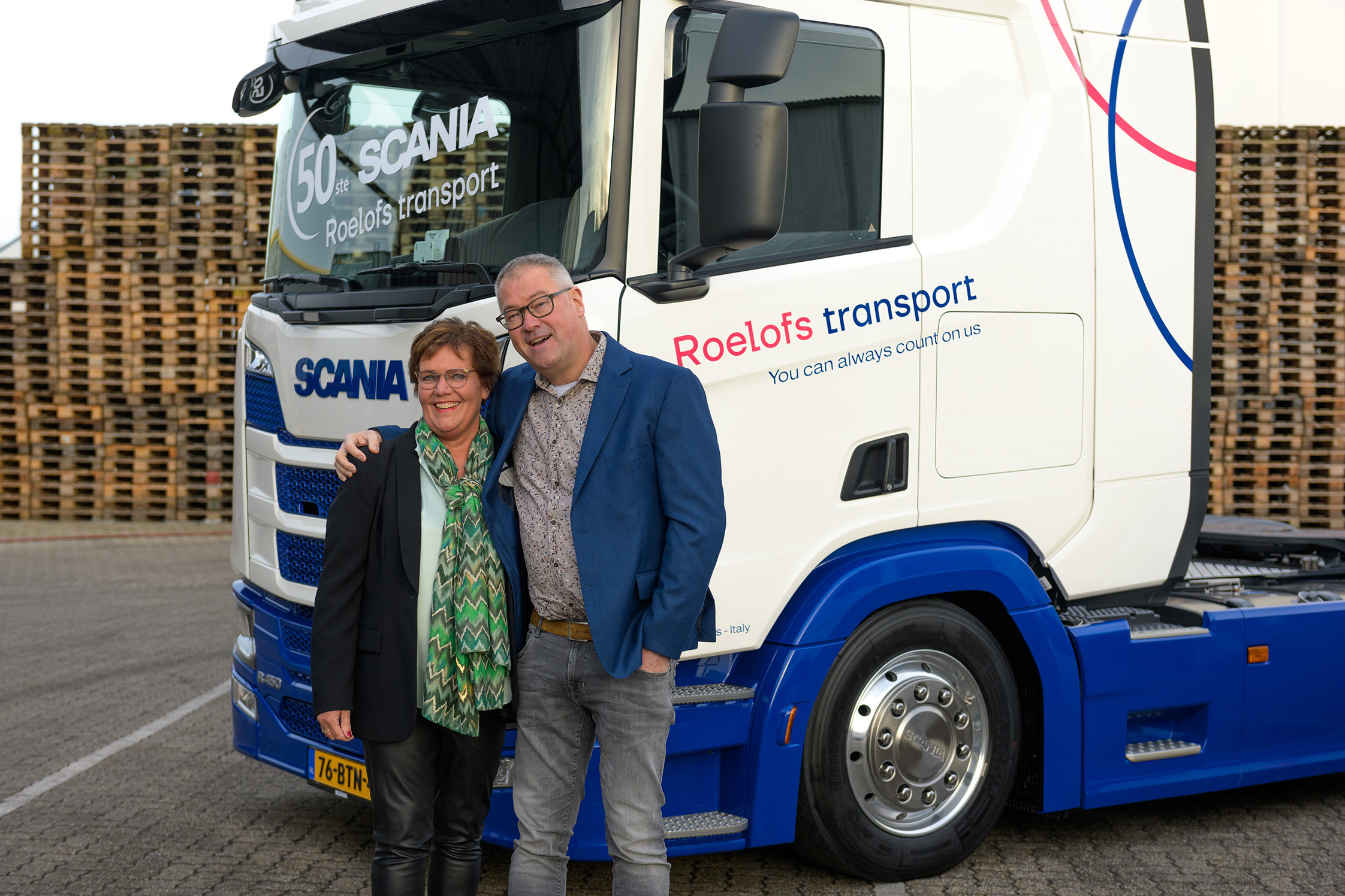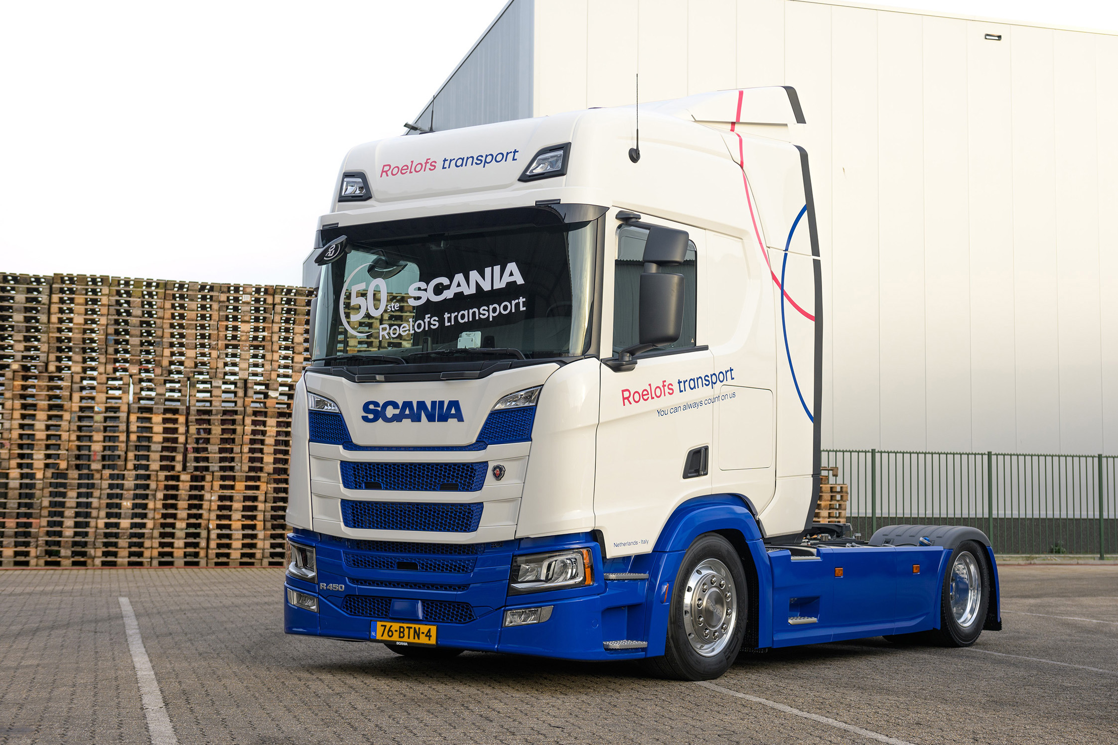 Roelofs kocht in 1991 zijn eerste truck waarmee hij op 25-jarige leeftijd zijn eigen transportbedrijf begon. Op dat moment had hij niet gedacht dat hij ruim dertig jaar later nummer vijftig in ontvangst zou nemen. “Ik ben een echte Scania man. Het zijn ontzettend luxe trucks en het brandstofverbruik is super,” zegt hij. Het is dan ook niet toevallig dat zijn wagenpark in de afgelopen vijfentwintig jaar met gemiddeld één Scania per jaar is gegroeid.
