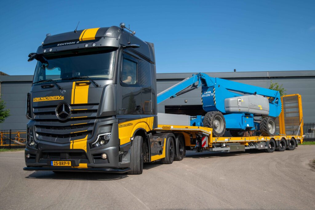 Vink Machinery verving hun Mercedes-Benz Antos voor de exclusieve en gelimiteerde Actros Edition 2. Met deze trekker kan het bedrijf meerdere en zwaardere machines transporteren. Met vrijwel alle mogelijke uitrustingsopties is deze Edition 2 de droom van elke chauffeur en het visitekaartje van Vink Machinery.