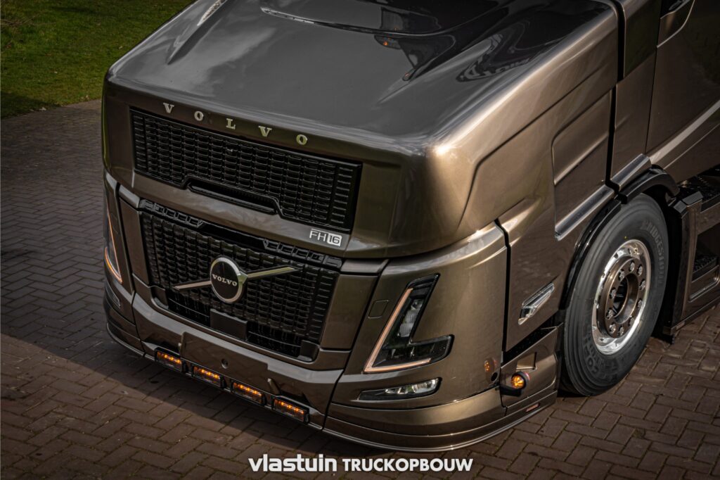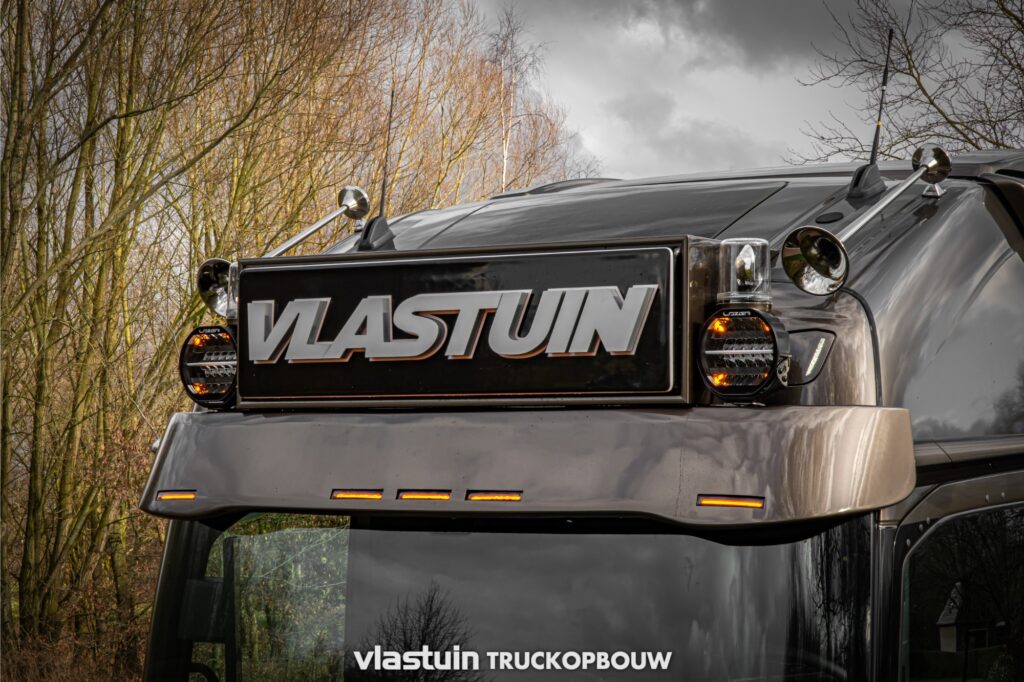 Naast de ontwikkeling van dit nieuwe torpedo-model heeft Vlastuin ook aandacht besteed aan vernieuwende details en extra functionaliteit. Zo is de truck uitgerust met een achterbumper met LED-bars, een verlicht Volvo-logo op het uitlaatrek en verlichte opgelegde letters op de lichtplaat. De opstappen aan de voorzijde zijn dichtgemaakt en voorzien van werkverlichting, wat niet alleen zorgt voor een strakkere look, maar ook de veiligheid en het gemak voor de chauffeur vergroot. Ook de rest van de extra verlichting en accessoires is zorgvuldig door Vlastuin aangebracht, met oog voor detail en afwerking.