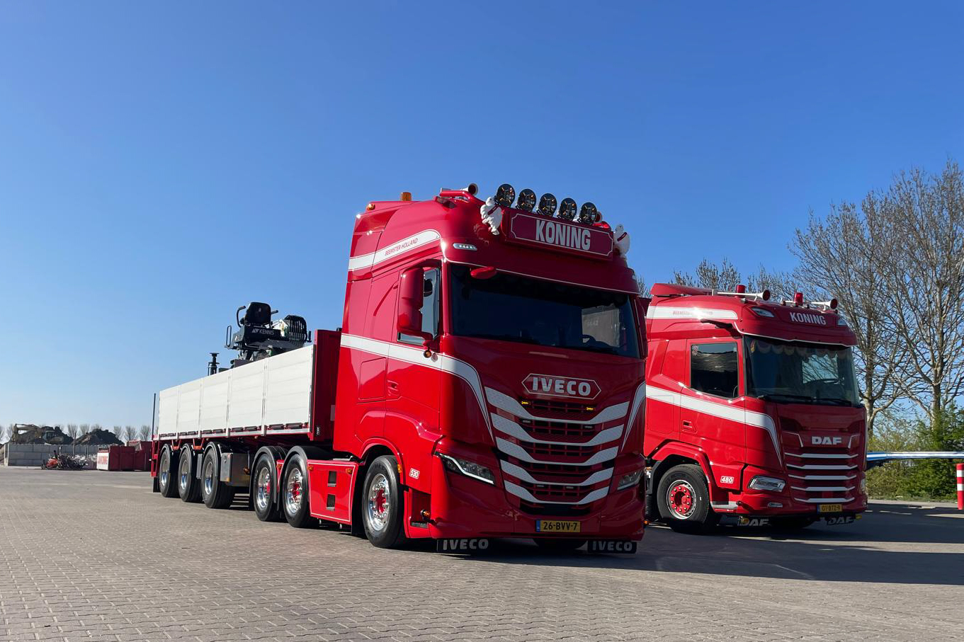 Voor het zware transport maakt Koning & Zn gebruik van Iveco-trucks met vermogens van 500 tot 530 pk. Deze voertuigen worden vooral ingezet voor het vervoer van losgestorte materialen, zoals stenen en rijplaten, met vaste chauffeurs op iedere truck. “We kiezen voor Iveco vanwege het vertrouwen in het merk én de leverancier. Het zijn fijne voertuigen met een hoog gebruikersgemak en we worden goed geholpen door onze dealer,” aldus de eigenaar.
