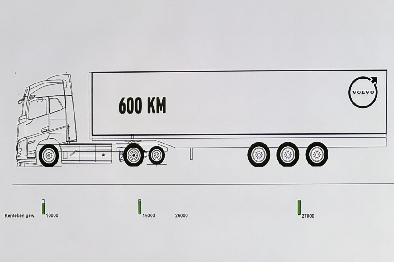 Volvo heeft een oplossing bedacht voor het probleem van het gewicht op de trekas bij elektrische vrachtwagens. Door een derde as toe te voegen, een gestuurde naloopas, kan er toch voldoende laadvermogen behouden blijven.