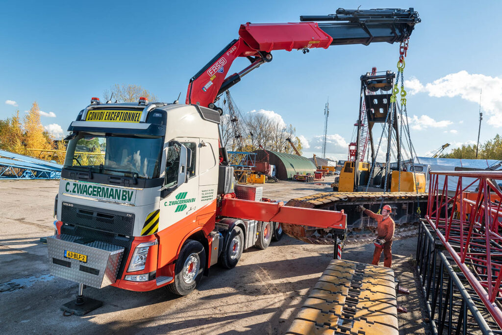 Zwagerman, gevestigd in Nederhorst den Berg, is gespecialiseerd in exceptioneel transport en hijswerk. “We zijn voornamelijk actief in de bouw en ‘zware’ techniek”, zegt eigenaar Cor Zwagerman. “Wij vervoeren, monteren en demonteren onder meer rupshijskranen en zandzuigers in opdracht van aannemers. Ook plaatsen we zware machines, zoals persen, in bedrijfshallen.”
