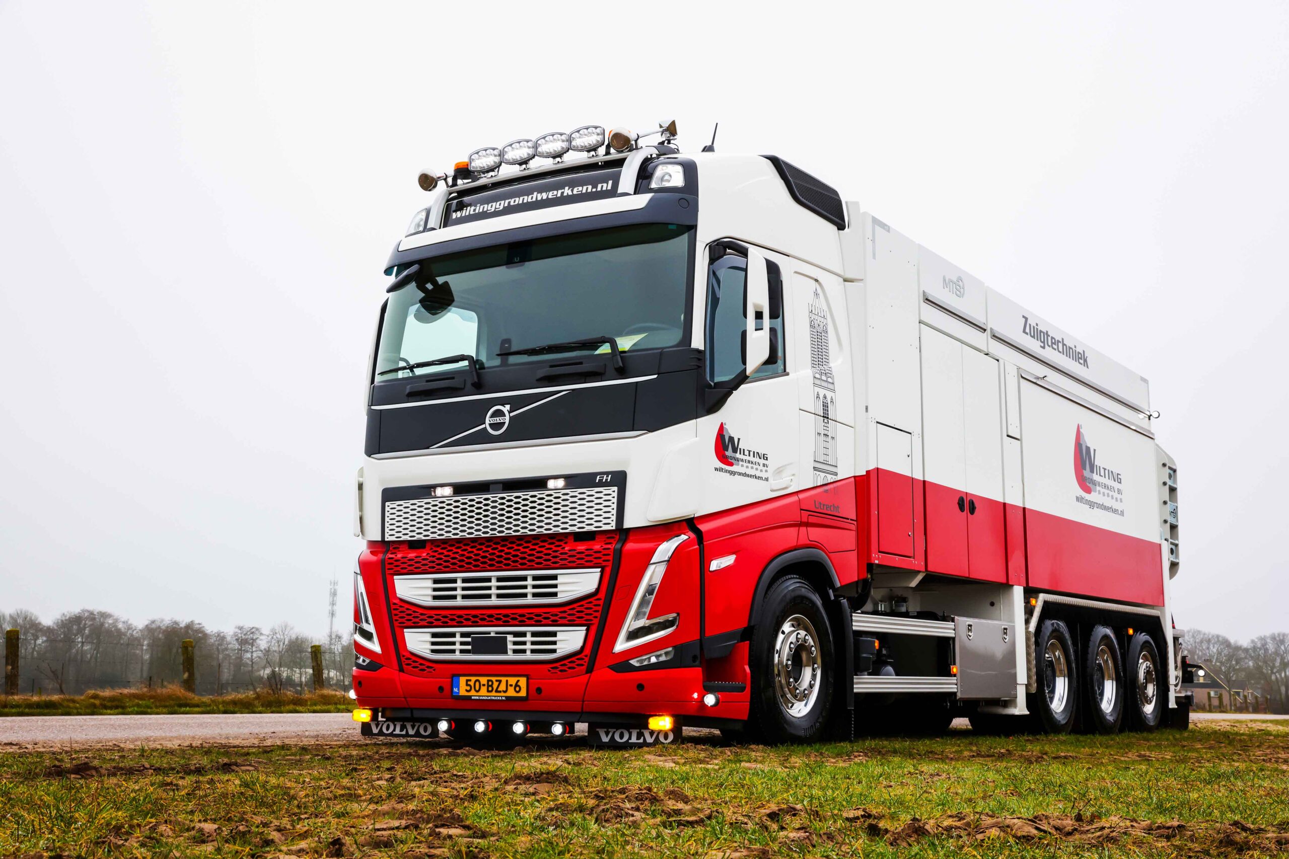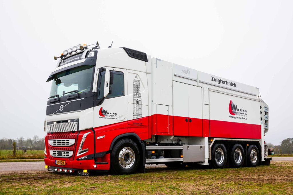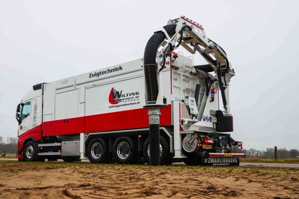 Wilting Grondwerken heeft onlangs haar nieuwe grondzuigmachine in gebruik genomen. Deze innovatieve machine is gebouwd op een Volvo FH-chassis, geleverd door Van Dijk Trucks. De specialistische opbouw van de truck werd vakkundig verzorgd door Droogsma Grondzuigmachines.