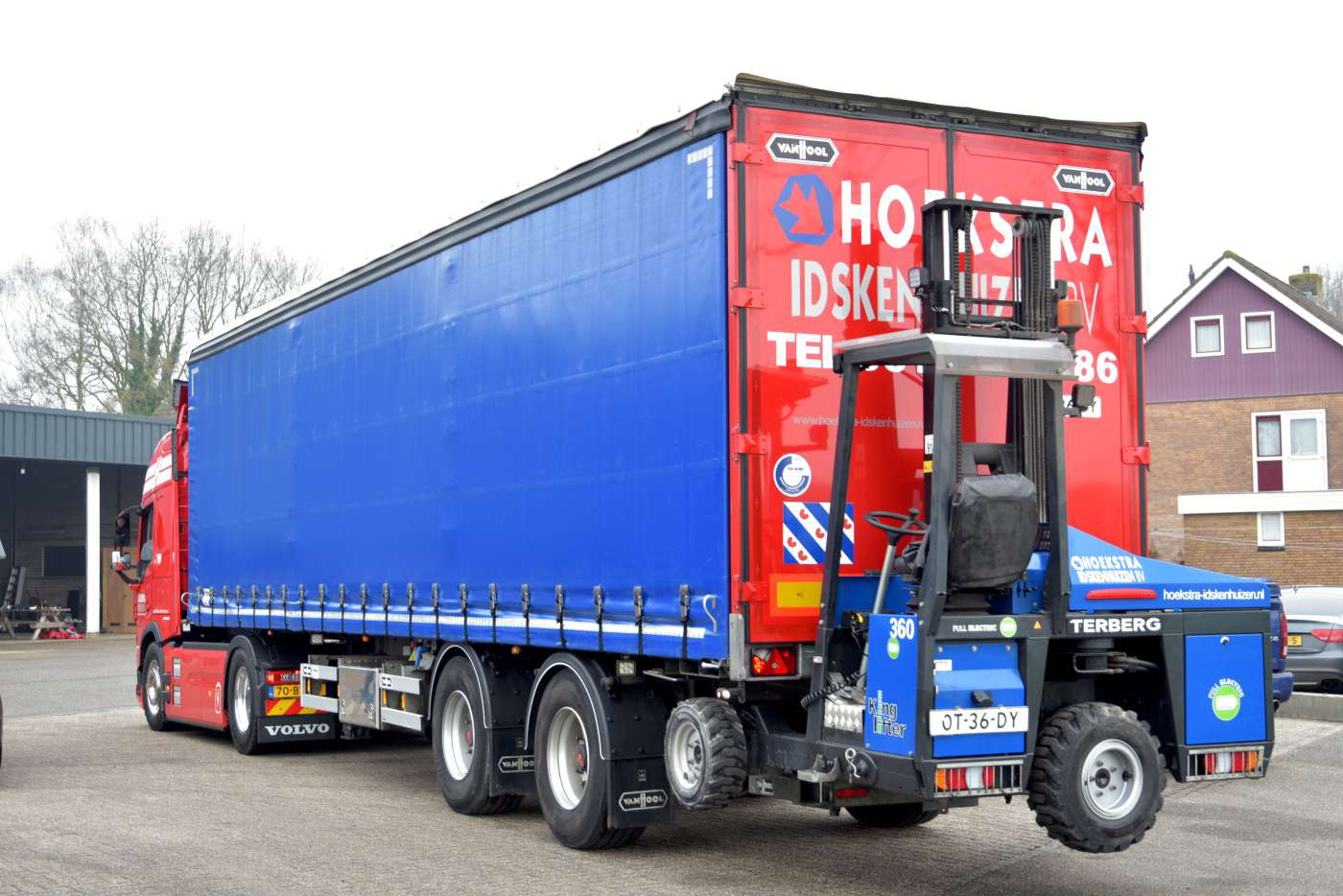 “Wij hebben nog geen vaste klanten voor deze truck maar wij willen vooral laten zien dat het kan, ook nu al,” aldus Jacco Hoekstra. Hij runt het bedrijf met zijn neef Rouke en zijn vader Anne Hoekstra. Jacco: “Wij rijden bijvoorbeeld met bouwmaterialen en dakbedekkingsmaterialen, waarbij we ook regelmatig woonwijken in moeten. Met deze elektrische truck zou dat ideaal zijn, vooral in combinatie met de elektrische Terberg King Lifter meeneemheftruck. Onze vaste klanten hebben wel belangstelling voor elektrisch transport, maar die willen eerst zien wat er mogelijk is. Dat is nou precies wat wij willen doen met deze eerste elektrische Volvo in onze vloot.”