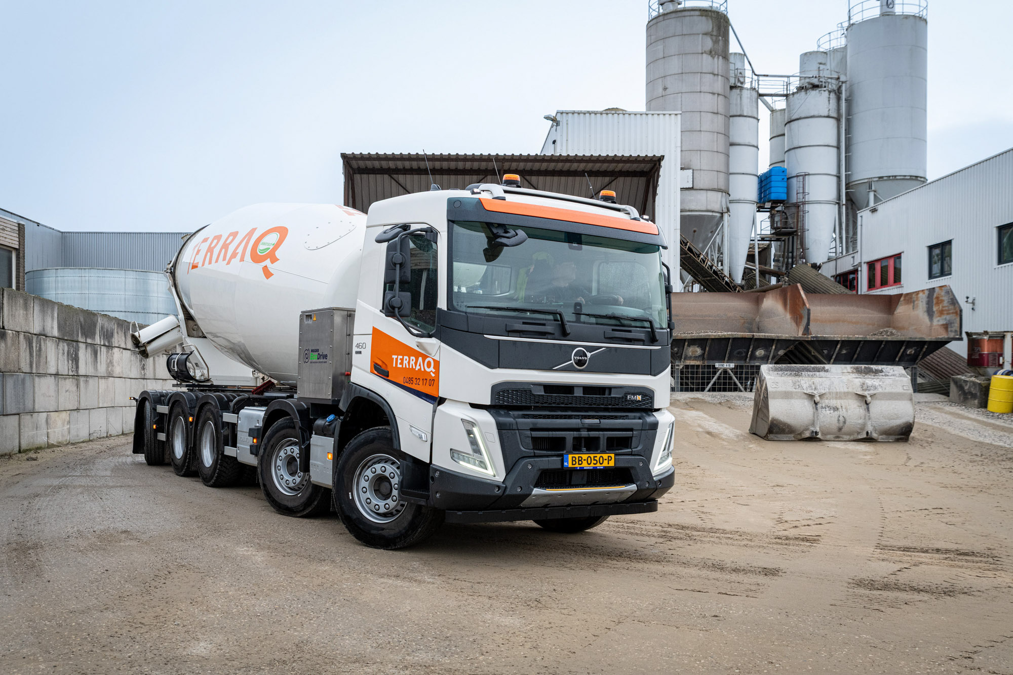Terraq heeft een bijzondere nieuwe Volvo FMX 460 10×4-betonmixer in gebruik genomen. Deze truck rijdt op duurzame HVO100-brandstof en is uitgerust met een volledig elektrisch aangedreven betonmixer. Ook een bestaande Volvo FMX 10×4-betonmixer van Terraq is omgebouwd en voorzien van dezelfde elektrische aandrijving. De Volvo FMX 10×4 is geleverd door Volvo Trucks-dealer Nebim.
