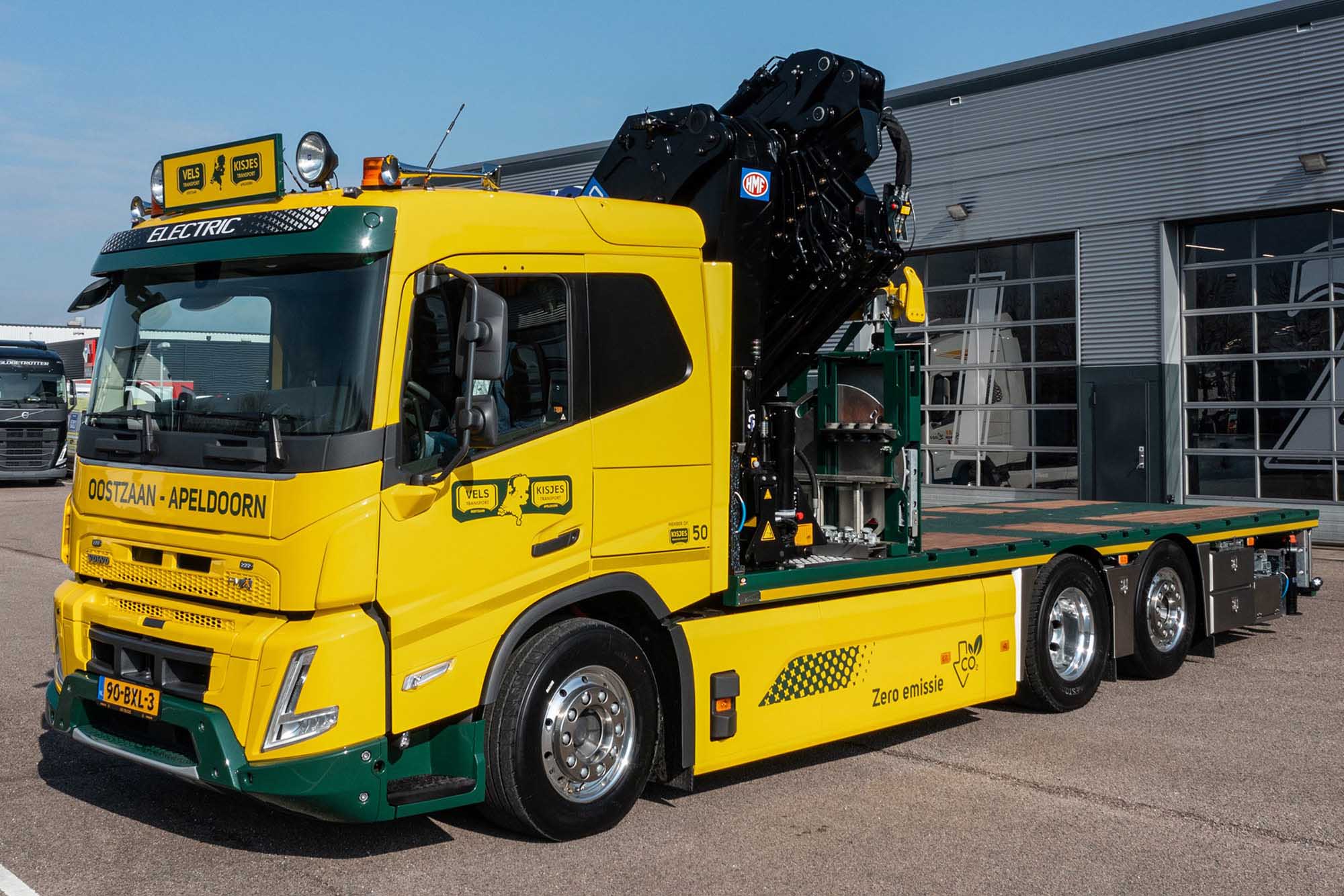 Kisjes Transport neemt opnieuw een elektrische truck in gebruik, na de eerder geleverde Volvo FH Electric. De eerste Volvo FMX Electric met 50 ton meter autolaadkraan van Nederland is toegevoegd aan het wagenpark van zusterbedrijf Vels Transport in Oostzaan.