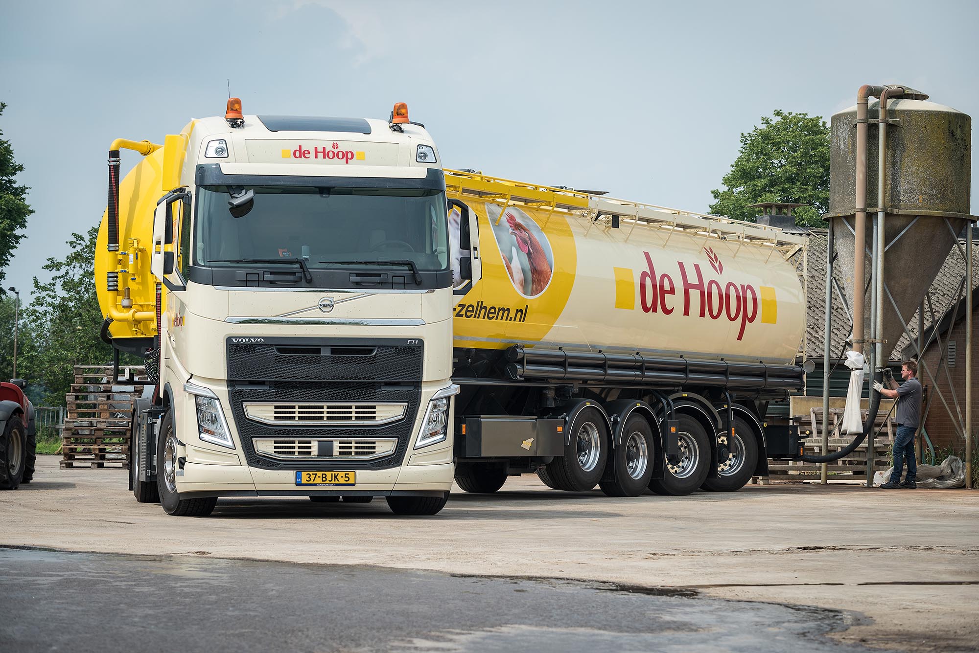 De Hoop Mengvoeders uit Zelhem heeft met de aanschaf van een Volvo FH 420 Light Concept én een vierassige bulktrailer van Welgro geïnvesteerd in veel laadvermogen.