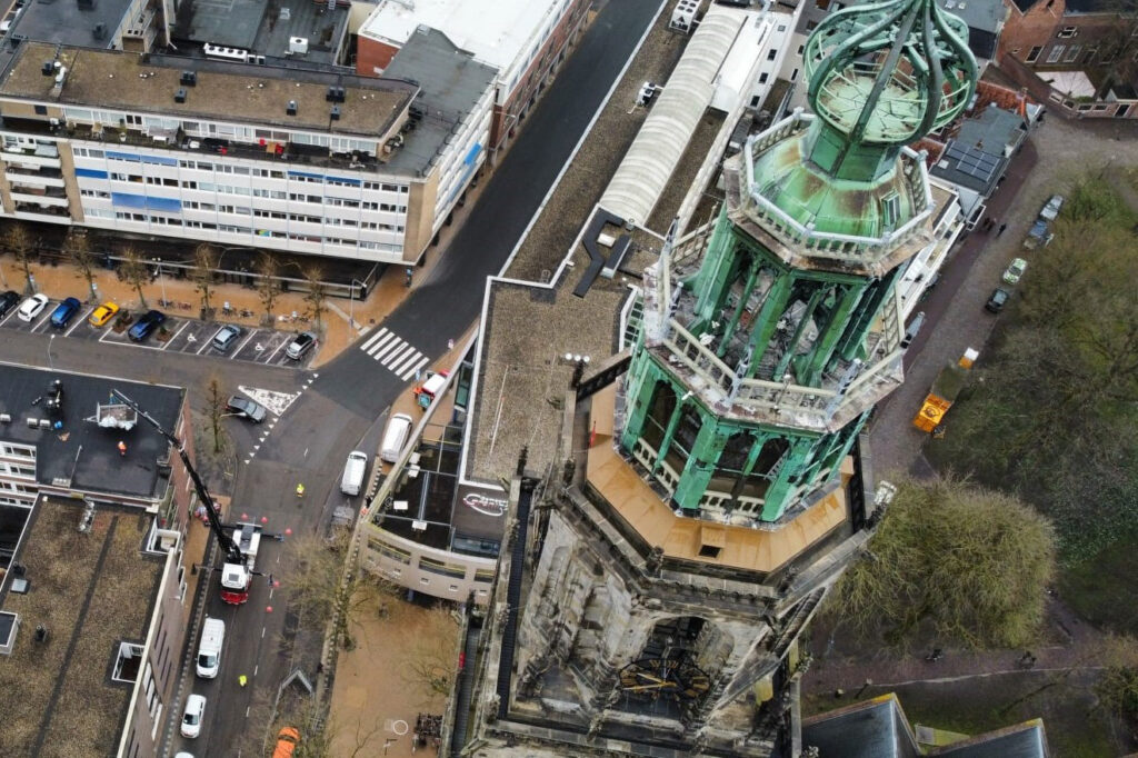 De nieuwste aanwinst werd de volgende dag direct ingezet. Op een bouwlocatie vlak naast de Martinitoren, midden in het centrum van Groningen, kreeg het team van Wagenborg Nedlift de opdracht om bouwmaterialen op het dak te zetten. Een uitgelezen klus voor Johannes en zijn nieuwe kniktelescoopkraan. Dankzij de snelle opbouwtijd en beperkte benodigde opstelruimte konden de hijswerkzaamheden veilig, efficiënt en zonder hinder voor de omgeving worden uitgevoerd.
