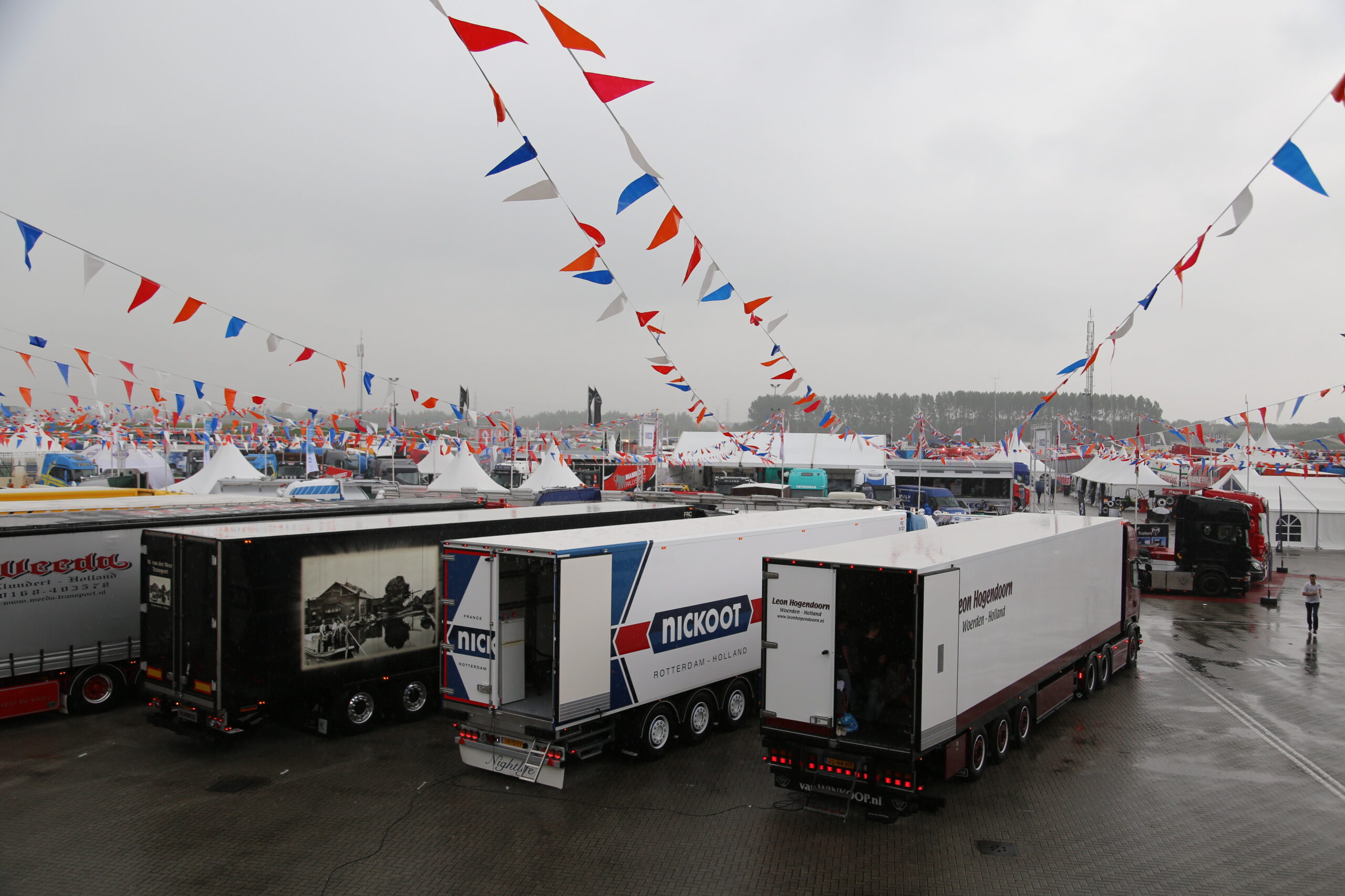 Rond de prachtige truck van Tijssen schijnt altijd de zon, ondanks dat de druppeltjes in grote getale naar beneden gerold komen.