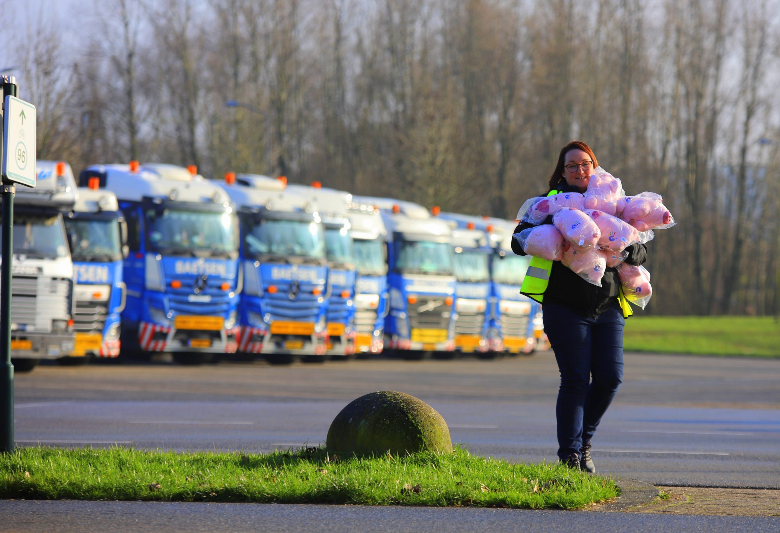 Met een flinke aanzet duwde wij Helmut de Wenstruck in, samen met zijn vrouw reden wij naar Baetsen toe. Bij binnenkomst stonden daar de collega-chauffeurs en familieleden te applaudisseren en de trucks stonden netjes opgesteld met hun zwaailampen aan als een groet. In de kantine was het een weerzien van vrienden, familie en collega’s, ‘papa’ Baetsen was ook aanwezig samen met zijn vrouw om een groet te brengen aan Helmut.