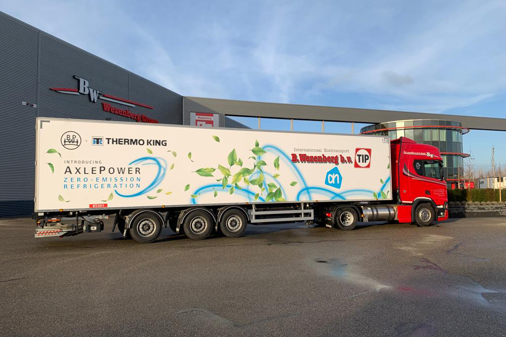 B. Wezenberg transport uit IJsselmuiden rijdt in samenwerking met TIP Group en Albert Heijn een nieuwe vol-elektrische koeloplegger. De oplegger zal door Wezenberg ingezet worden in de winkeldistributie voor Albert Heijn.