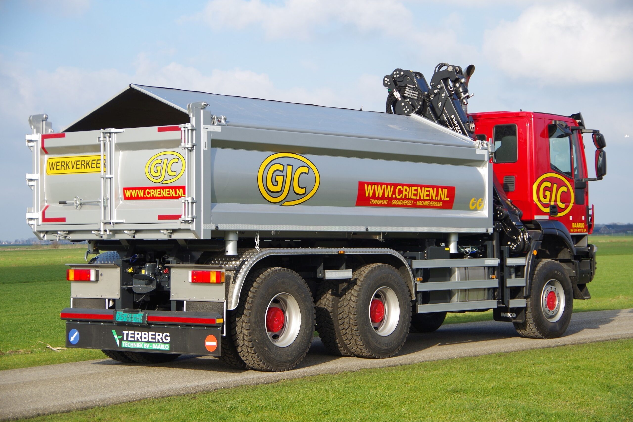 De IVECO Trakker van G.J. Crienen is voorzien van een Palfinger Epsilon Q180Z – Kipperkraan gemonteerd met een Bakker grijper, model DDV EZ 090. Tevens is de auto voorzien van een tweezijdige kipper met afdekschotten. De afdekschotten worden bedient door een hydromotor in het kopschot, zodat er gemakkelijk met een heftruck geladen kan worden.