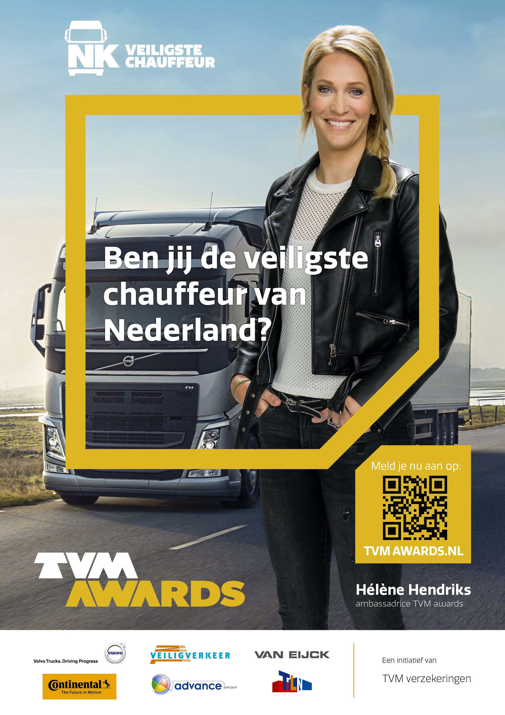 TV-presentatrice Hélène Hendriks heeft zich als ambassadrice aan de TVM Awards verbonden. Hendriks: “Veel mensen zullen zich misschien afvragen: wat heeft Hélène met vrachtwagens? Nou, niet heel veel. Maar ik heb wel veel met verkeersveiligheid en veilig rijgedrag. Ik zit veel op de weg en dan zie je van alles om je heen gebeuren. Bijvoorbeeld mensen die aan het appen zijn. Dat soort dingen kan echt niet. Ik heb ook echt ontzettend veel respect voor de beroepschauffeurs die onze economie draaiende houden door dagelijks op een veilige en professionele manier goederen van A naar B te brengen. Ik kom uit de sportwereld, maar ik kan iedereen verzekeren: ook dit is topsport.”