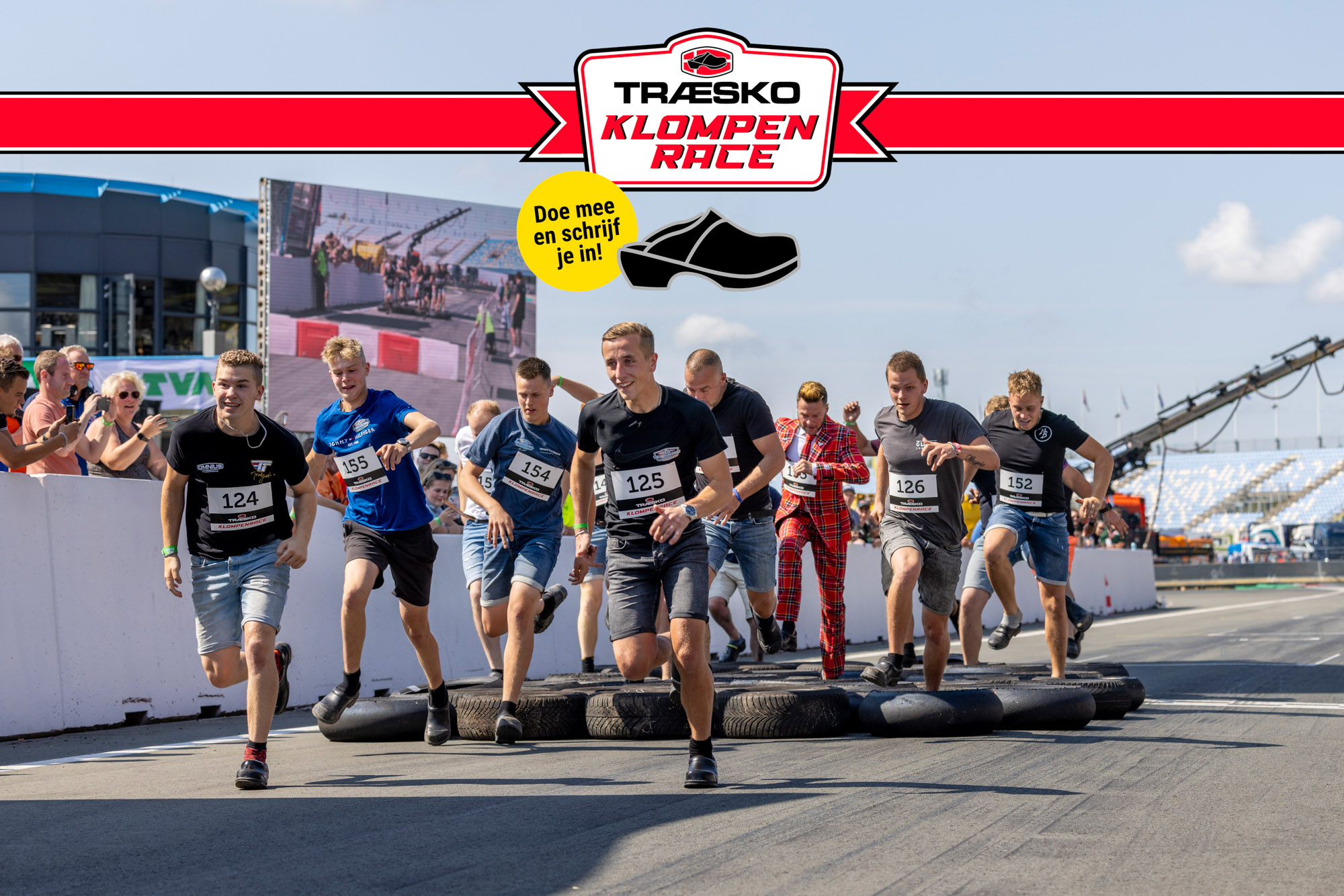 • De Traesko klompenrace vind plaats op zaterdag 26 juli van 11.15 uur tot 11.55 uur tijdens het Profile Truckstar Festival voor de Hoofdtribune.