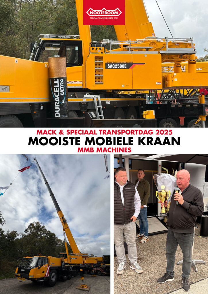 Tijdens de 44e editie van de Mack & Speciaal Transportdag, op zondag 12 oktober in Soest, zijn voor de derde keer de Johan van de Water Trofeeën uitgereikt. Op de stand van Nooteboom werden de prijzen overhandigd in drie categorieën: Mooiste lading, Mooiste mobiele kraan en Mooiste transportcombinatie. De vakjury koos de winnaars uit alle deelnemers aan dit populaire evenement.