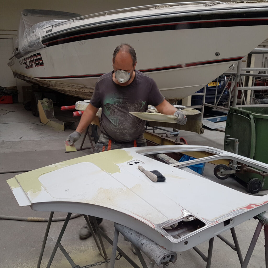 In het hoofd van Simon was al een beeld ontstaan van hoe de Mercedes eruit moest komen te zien. “Het chassis viel mee. Dat hebben we roestvrij gemaakt en opnieuw rood gespoten. Ook de motor heeft enkel een grote beurt gehad, want voor de rest liep die nog als een zonnetje. De rest van de techniek was eveneens in orde, al hebben we wel slijtagedelen als de remmen vernieuwd.” Een groot voordeel bij de restauratie blijkt het feit dat de SK van redelijk recente datum is. “Daardoor was eigenlijk alles nog gewoon bij de dealer te bestellen. Denk aan verse rubbers, nieuwe spiegels en spiegelsteunen, technische onderdelen en noem maar op.”