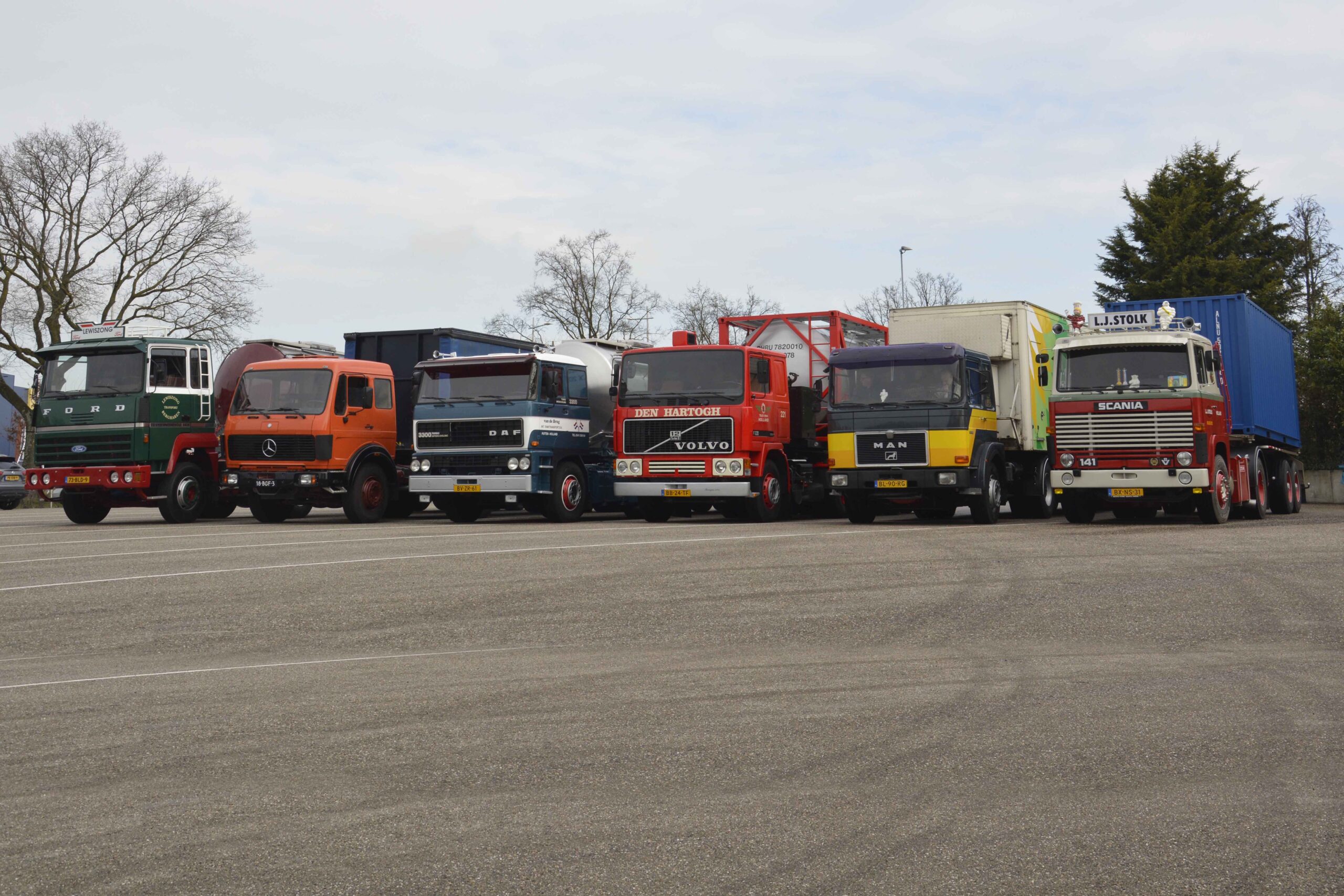 We vragen hun eigenaren om op een zonnige zaterdag met hun klassiekers naar Amersfoort te komen voor een mooie reportage. Als alle zes auto’s zijn gearriveerd, ziet het er op het parkeerterrein uit alsof we veertig jaar terug in de tijd zijn. Op een rij: DAF FT3300, MAN F8 19.321, Scania LB141S V8, Ford Transcontinental 4435, Mercedes-Benz 1936 en een Volvo F12
