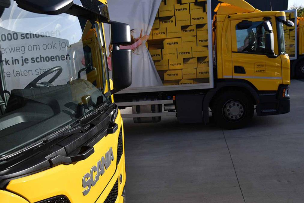 Met jaarlijks niet minder dan 2,6 miljoen paar schoenen die via de 76 winkels van Schoenen Torfs verkocht worden, draait de logistieke keten van het bedrijf op volle toeren. Voortaan zorgen zes gloednieuwe exemplaren van de Scania P220 voor de dagelijkse distributie vanuit het logistieke centrum in Temse.