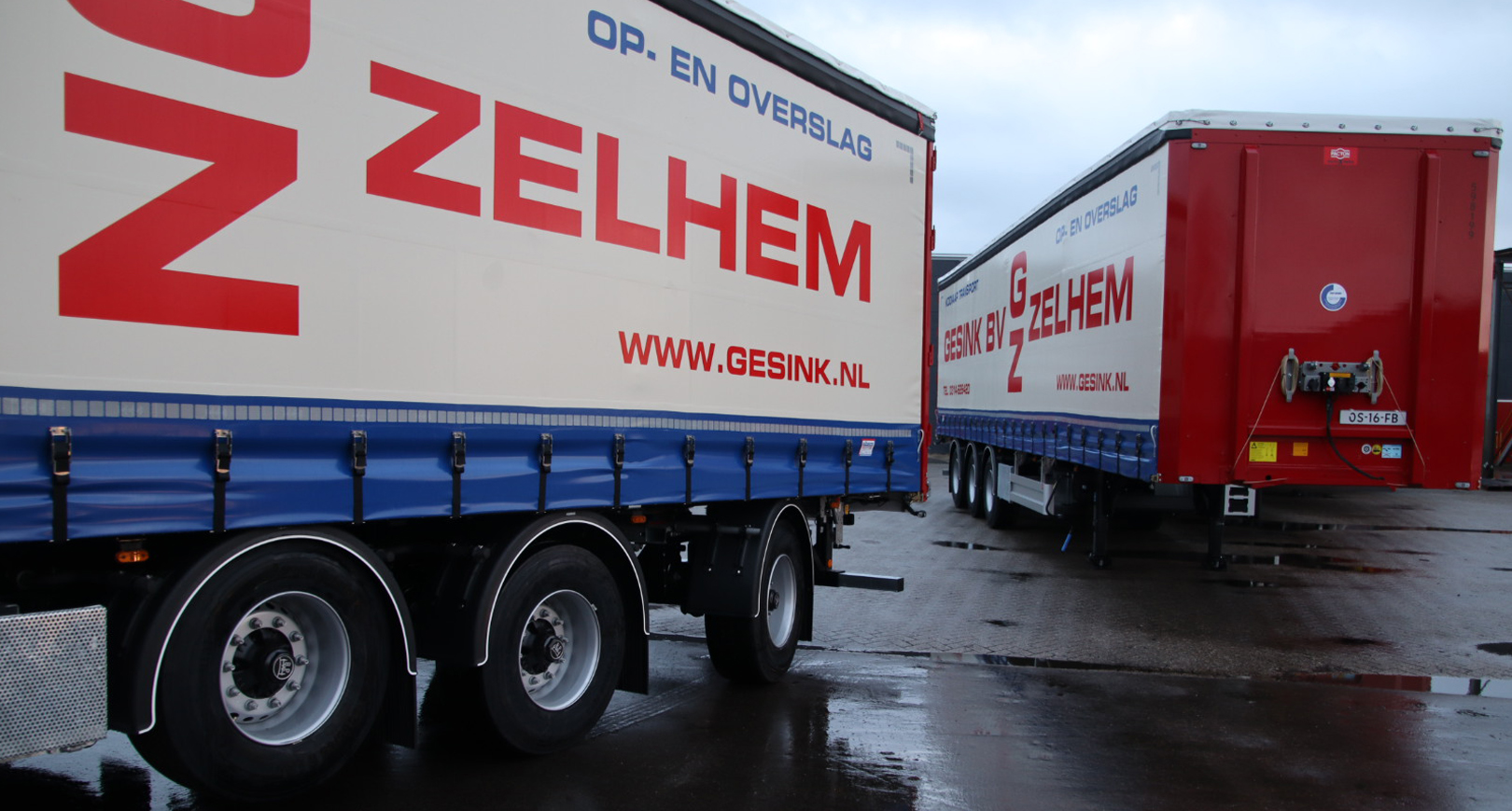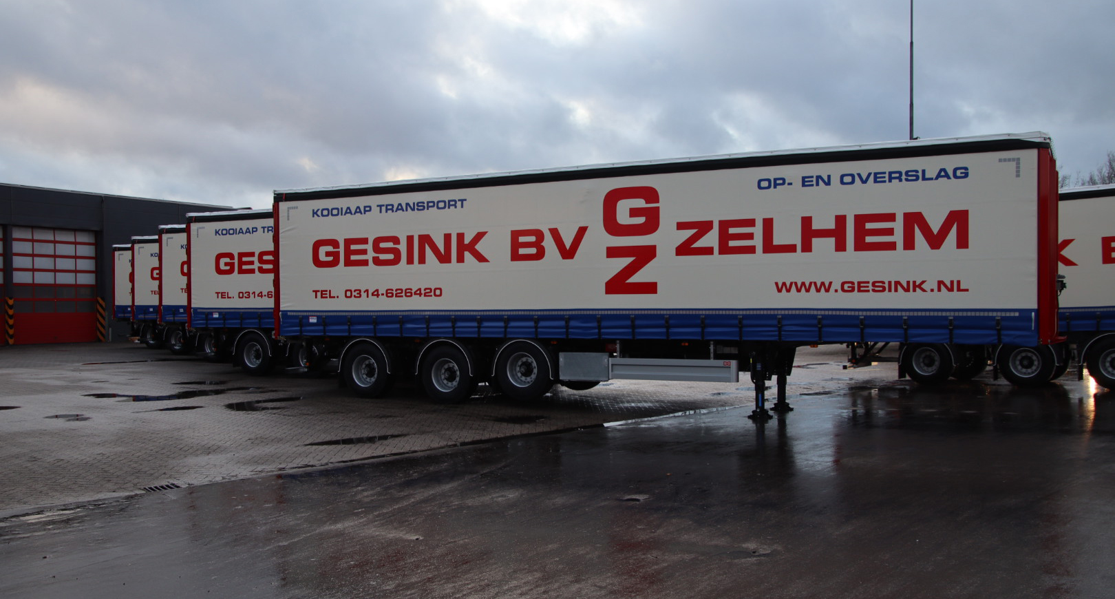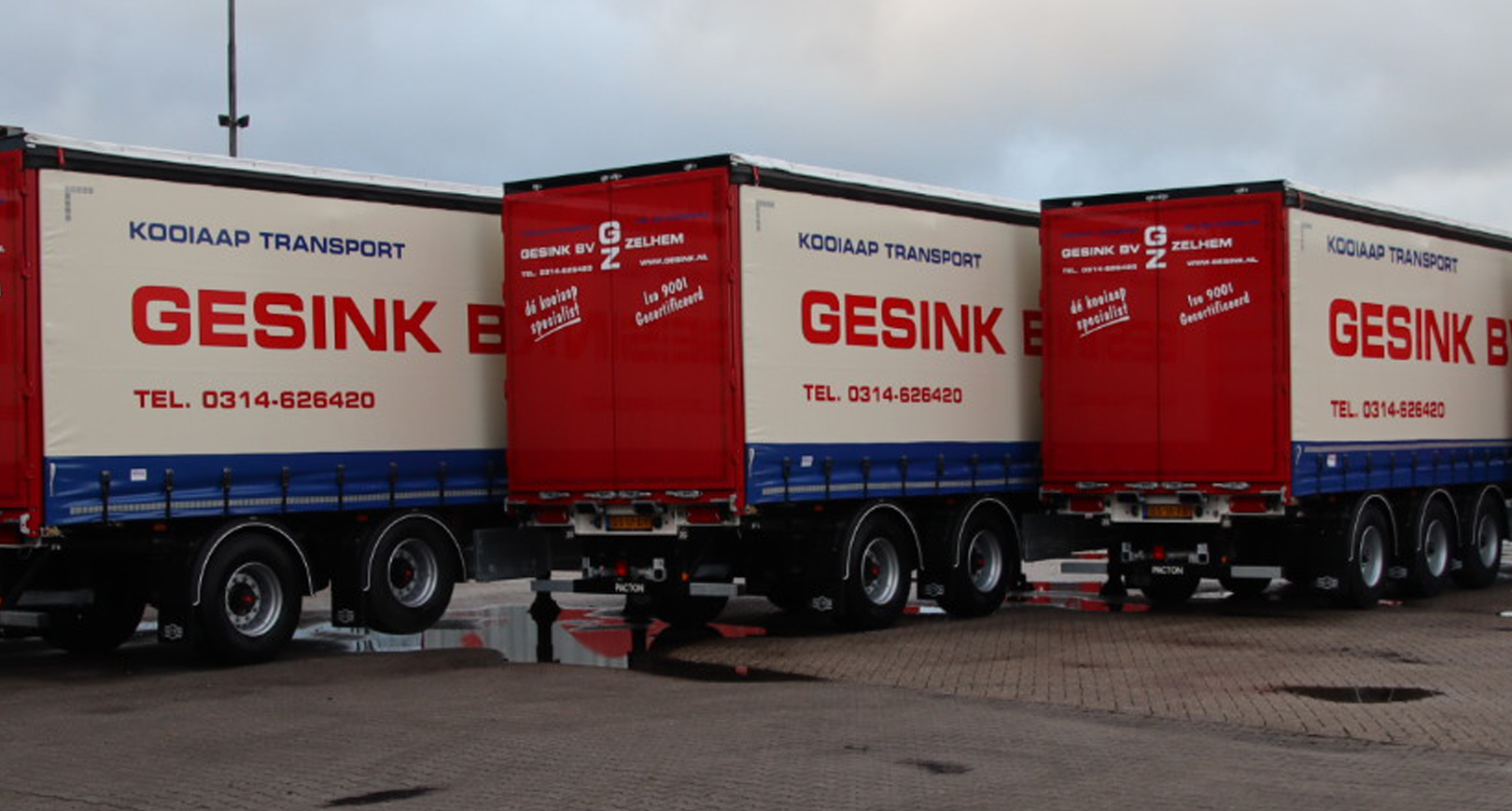 De opleggers zijn, compleet uitgevoerd met Gesink-schuifzeilen en -bedrijfskleuren door Pacton afgeleverd.