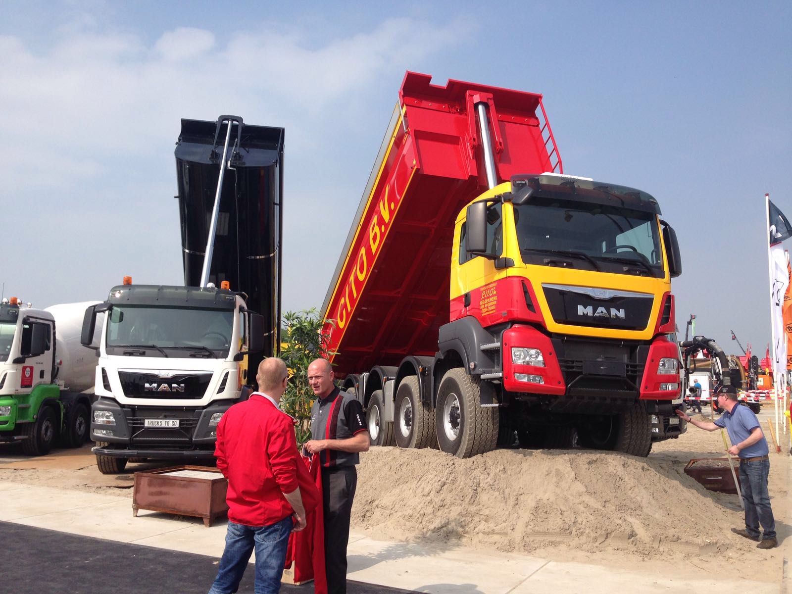 Onder de exposanten vind je de grote bouw- en graafmachine-fabrikanten, maar ook de belangrijke truckmerken. Er zelfs een demobaan waar met enkele trucks gereden kan worden.