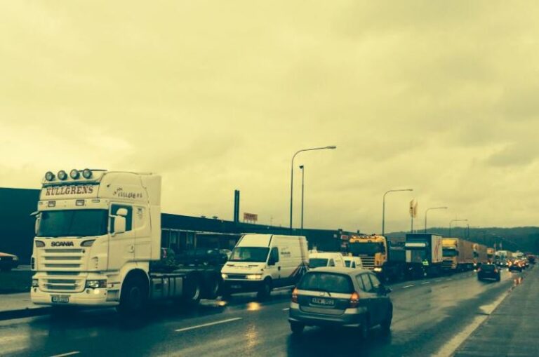 Zweedse chauffeurs voeren actie en lijken op de eerste dag, goed gehoor te geven aan wat een maand lang actie voeren moet worden door middel van het stilzetten van de truck langs de kant van de weg.